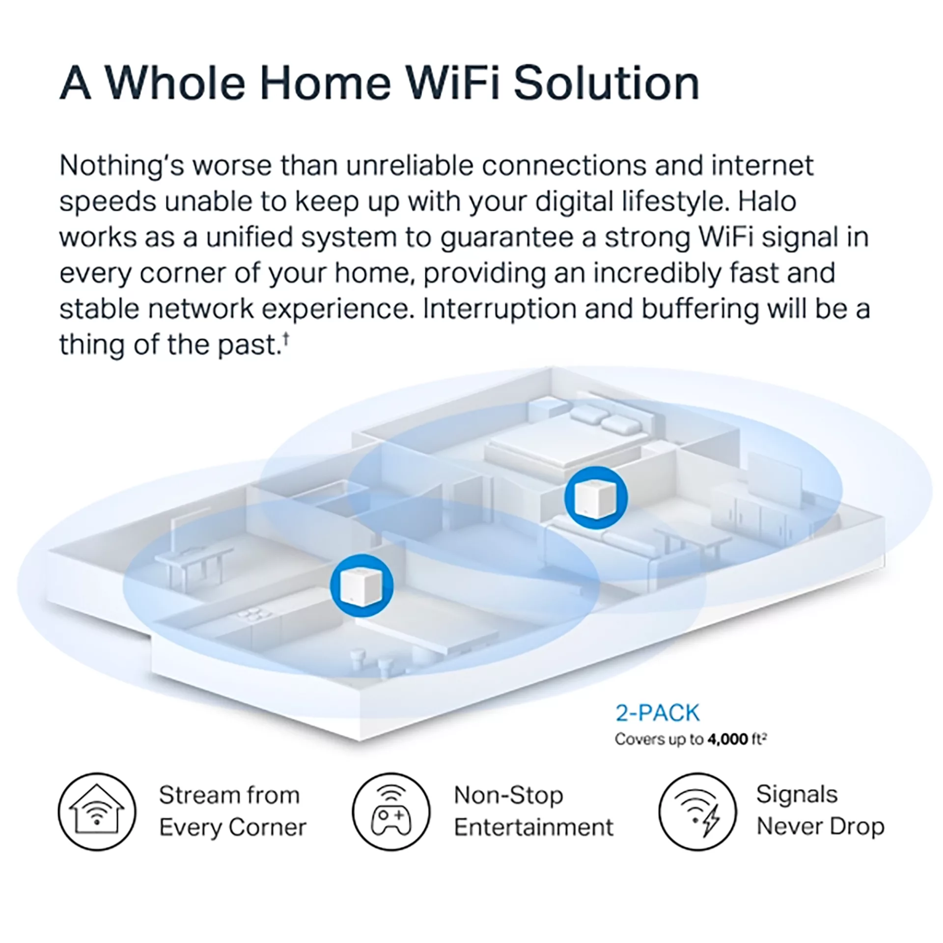 Las unidades Halo se conectan para cambiar automáticamente entre Halos mientras te desplazas por tu casa con un único nombre y contraseña de WIFI unificados.