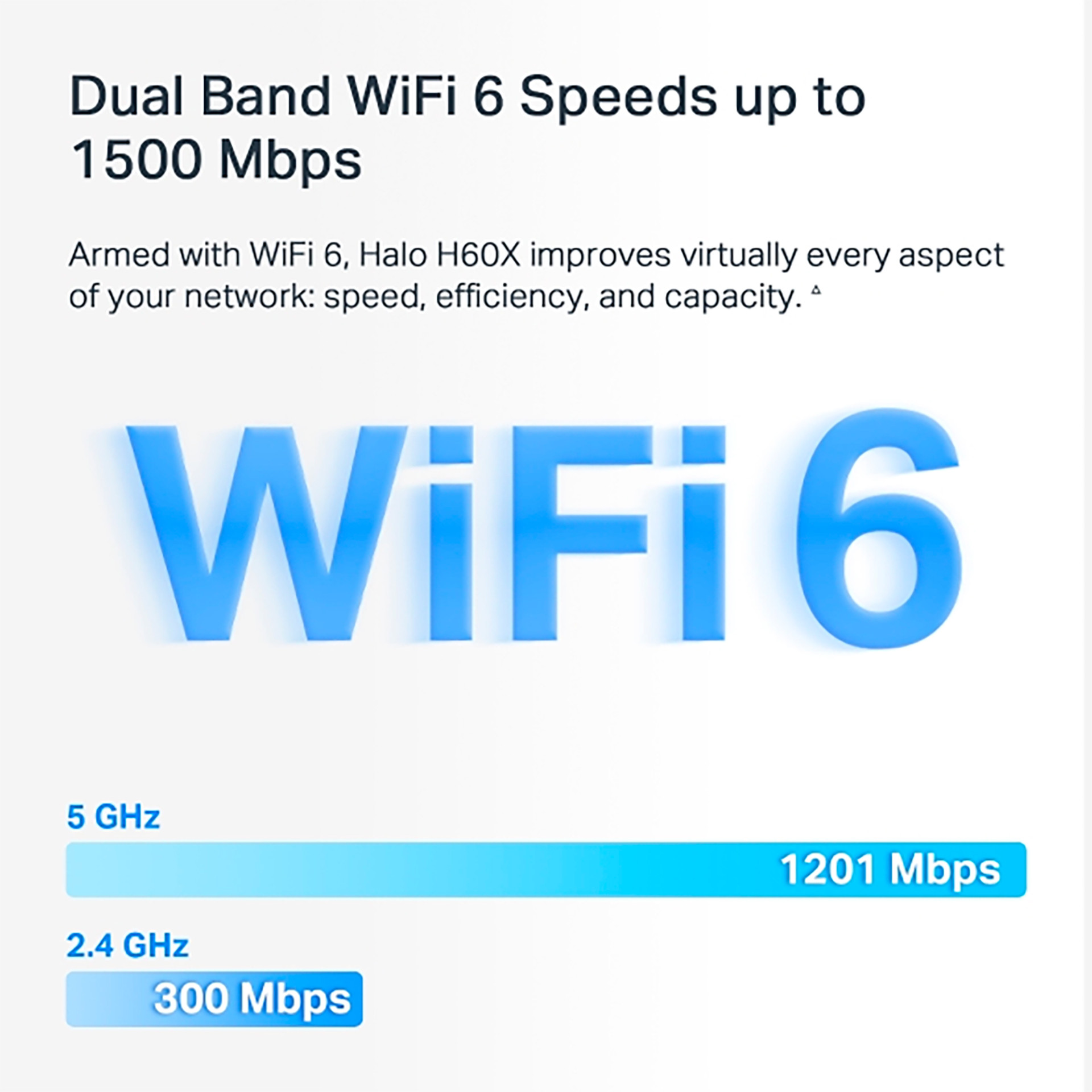WIFI 6 de doble banda con velocidades de hasta 1500 Mbps.
