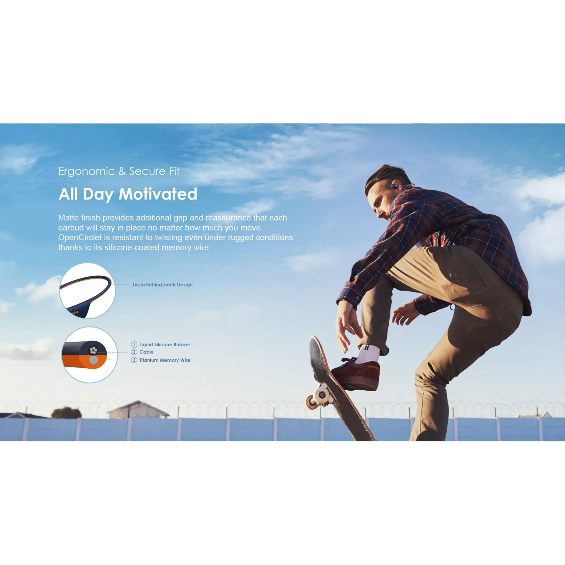 DISEÑO OPEN-EAR: Permite colocar los controladores fuera de los oídos, lo que podría reducir el daño del tímpano causado por un volumen alto. Además, garantiza la circulación del aire para prevenir el crecimiento bacteriano. También permite escuchar lo que sucede alrededor, como el tráfico y otros sonidos, lo que ayuda a mantener la conciencia espacial en cualquier momento y no perderse ninguna información importante, siendo más seguro para actividades al aire libre.