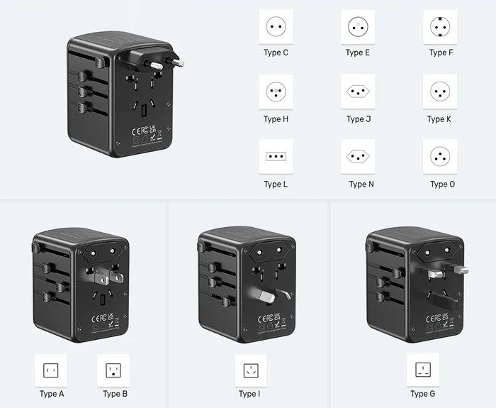 Adaptador de viaje universal de 35 W de UNITEK con 2 puertos de carga USB-C PD (máximo de 35 W) y 3 puertos de carga USB-A 3.0 (máximo de 12 W) que pueden cargar hasta 5 dispositivos simultáneamente. Es ideal para viajes, viajes de negocios o para estudiar en el extranjero. Los enchufes de viaje integrados se pueden utilizar en más de 200 países de todo el mundo.