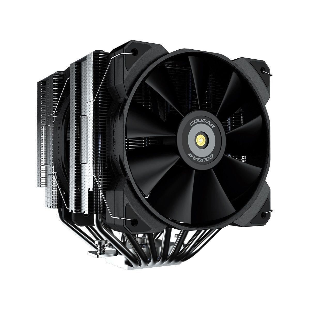 Para los entusiastas y los jugadores que buscan llevar sus sistemas al límite, el Forza 135 ofrece un equilibrio excepcional de funcionamiento ultrasilencioso y refrigeración potente como enfriador de aire de doble torre para CPU de alto nivel. Su cubierta frontal tiene un diseño exclusivo y está equipada con los ventiladores de alto rendimiento de COUGAR, el MHP140-A y el MHP120.
