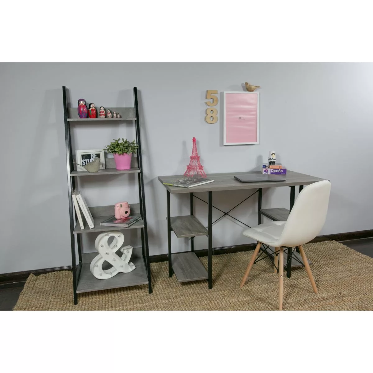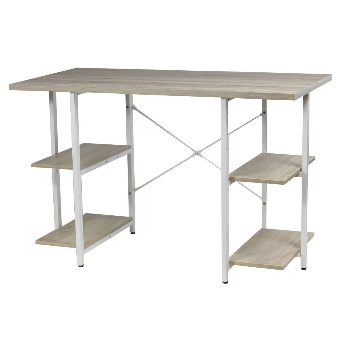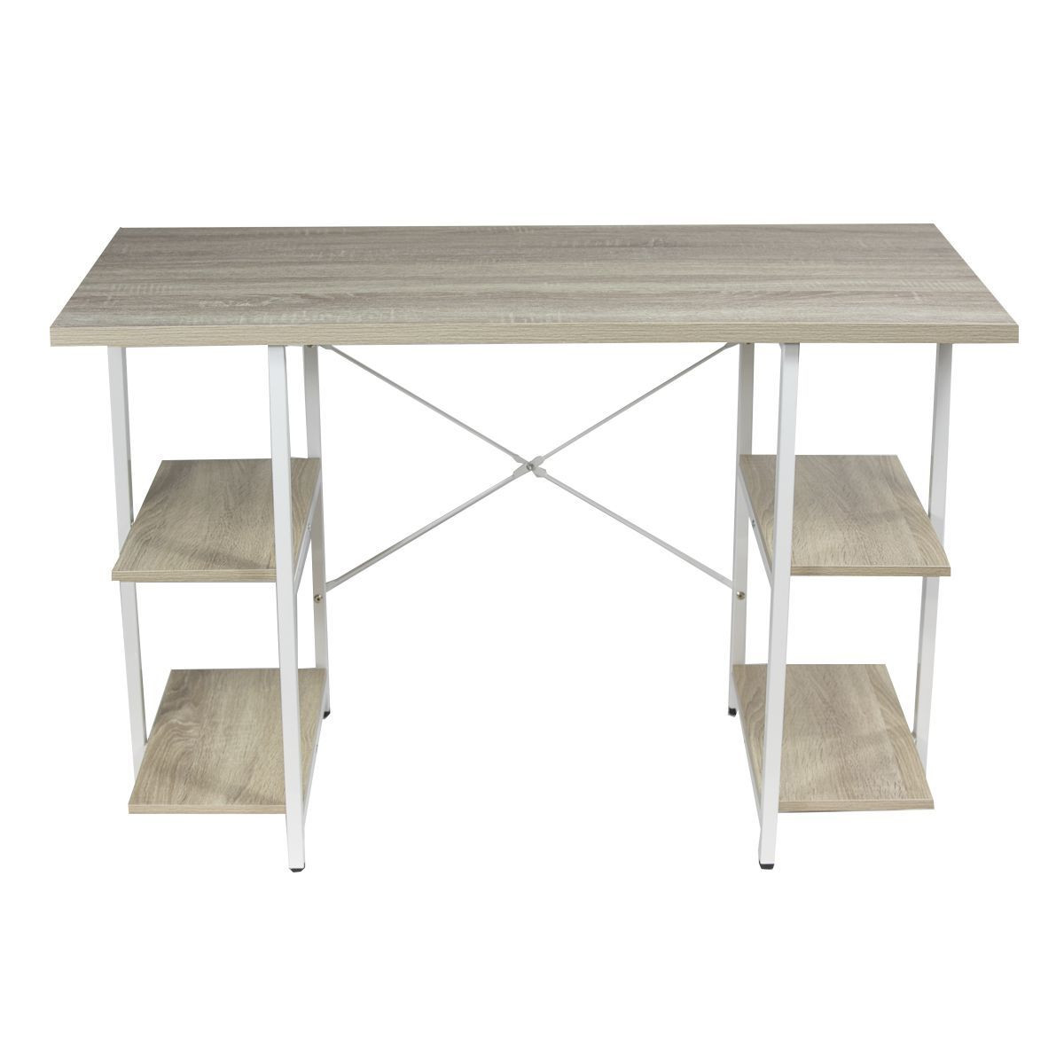 Escritorio para PC, ideal para darle un toque elegante a tus ambientes modernos y luminosos. Su estructura de acero, sus 4 estantes y su tonalidad madera lo convierten en un mueble práctico y funcional que admite combinaciones con diferentes estilos decorativos.