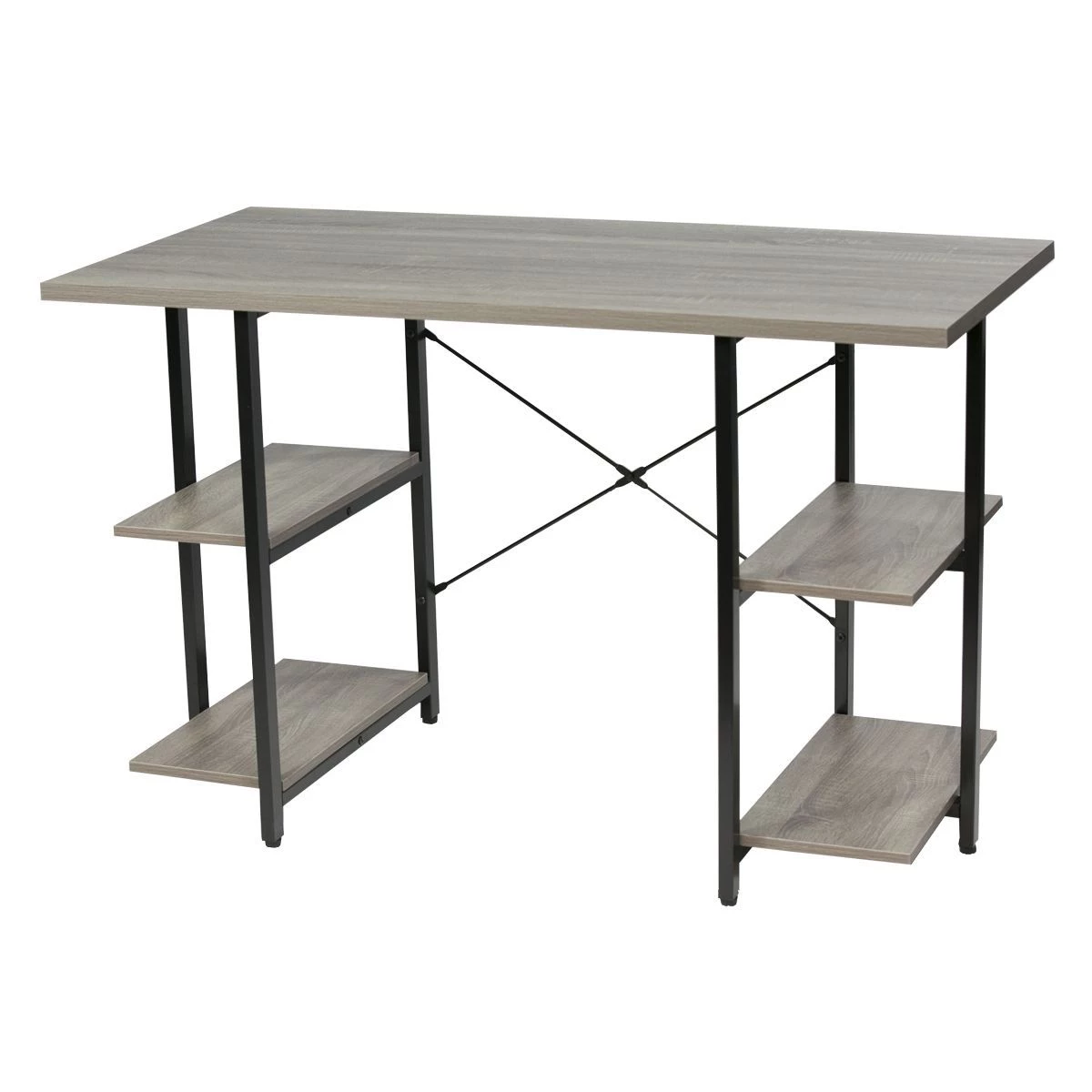 Escritorio para PC, ideal para darle un toque elegante a tus ambientes modernos y luminosos. Su estructura de acero, sus 4 estantes y su tonalidad madera lo convierten en un mueble práctico y funcional que admite combinaciones con diferentes estilos decorativos.
