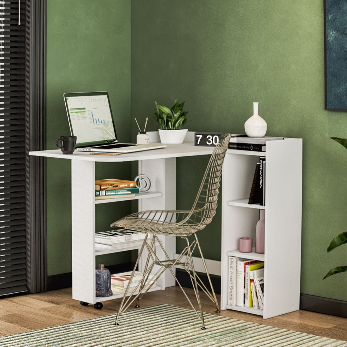 Su diseño esquinero maximiza el espacio y su funcionalidad lo convierte en la opción ideal para ambientes reducidos, ya sea en el dormitorio, sala, comedor diario, cocina, o en ese rincón especial donde tu emprendimiento se hace realidad!