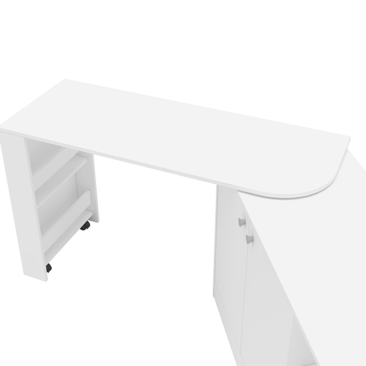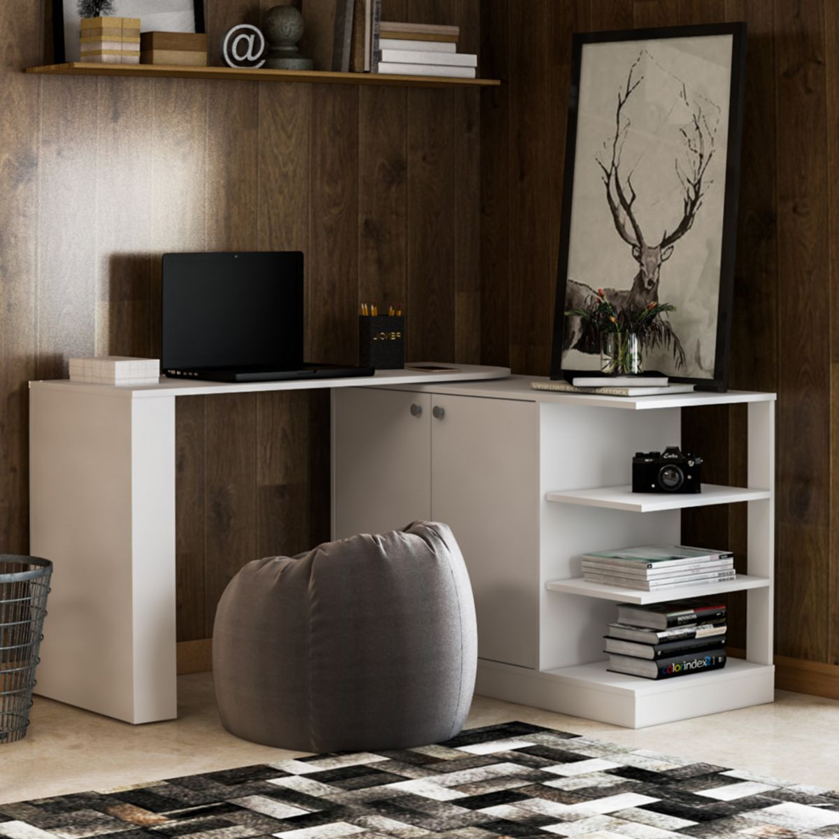 El escritorio Delfos, es una pieza funcional y adaptable a múltiples espacios. Gracias a su mesa de trabajo giratoria (con pivot) podés usarlo en distintas posiciones: Totalmente cerrado como armario, girando su mesa 90° como escritorio esquinero en formato "L" o girando la mesa 180° extendiendo el área de trabajo como amplia mesa lineal. Disfrutá de tu espacio de trabajo como más te rinda, cómodo y ordenado!
