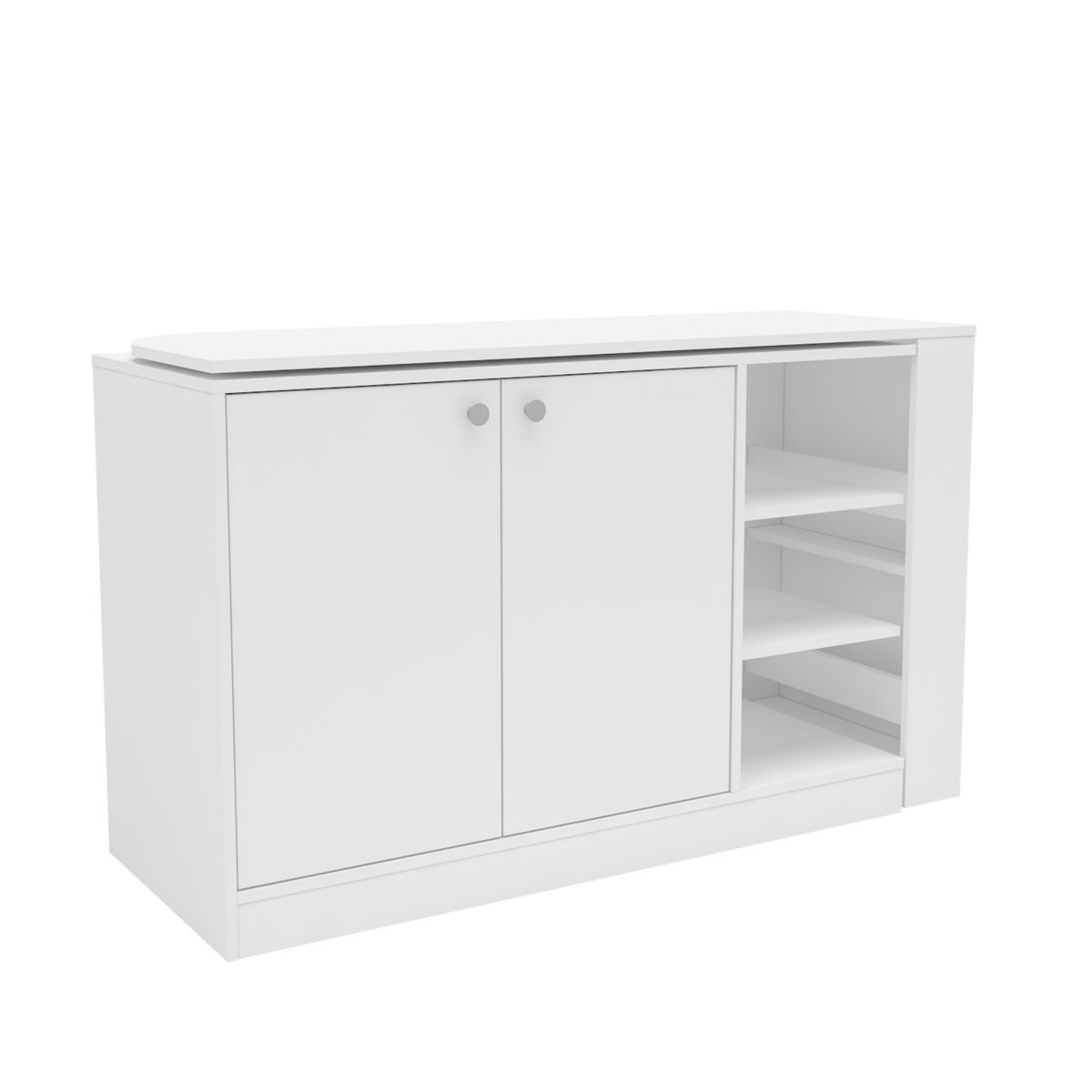 Mesa de trabajo extensible, armario de 2 puertas con estante interior, 3 estantes a la vista y 3 estantes libreros.