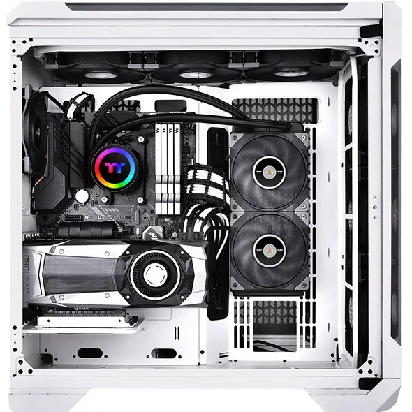 La TOUGHLIQUID 240 ARGB Sync AIO es una refrigeración líquida todo en uno equipada con ventiladores TOUGHFAN 12, con una controladora incorporada, y una tapa giratoria con 6 LEDs. La iluminación que también puede ser controlada por Motherboards compatibles con RGB de 5V.