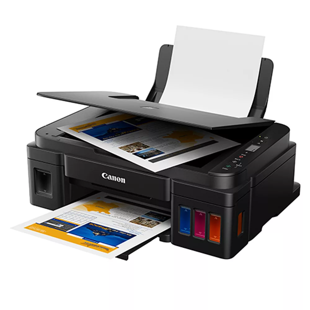 La impresora PIXMA G2110 proporciona la capacidad de imprimir, copiar y escanear y una pantalla LCD de 1,2 pulgadas el cual permite fácilmente hacer copias.