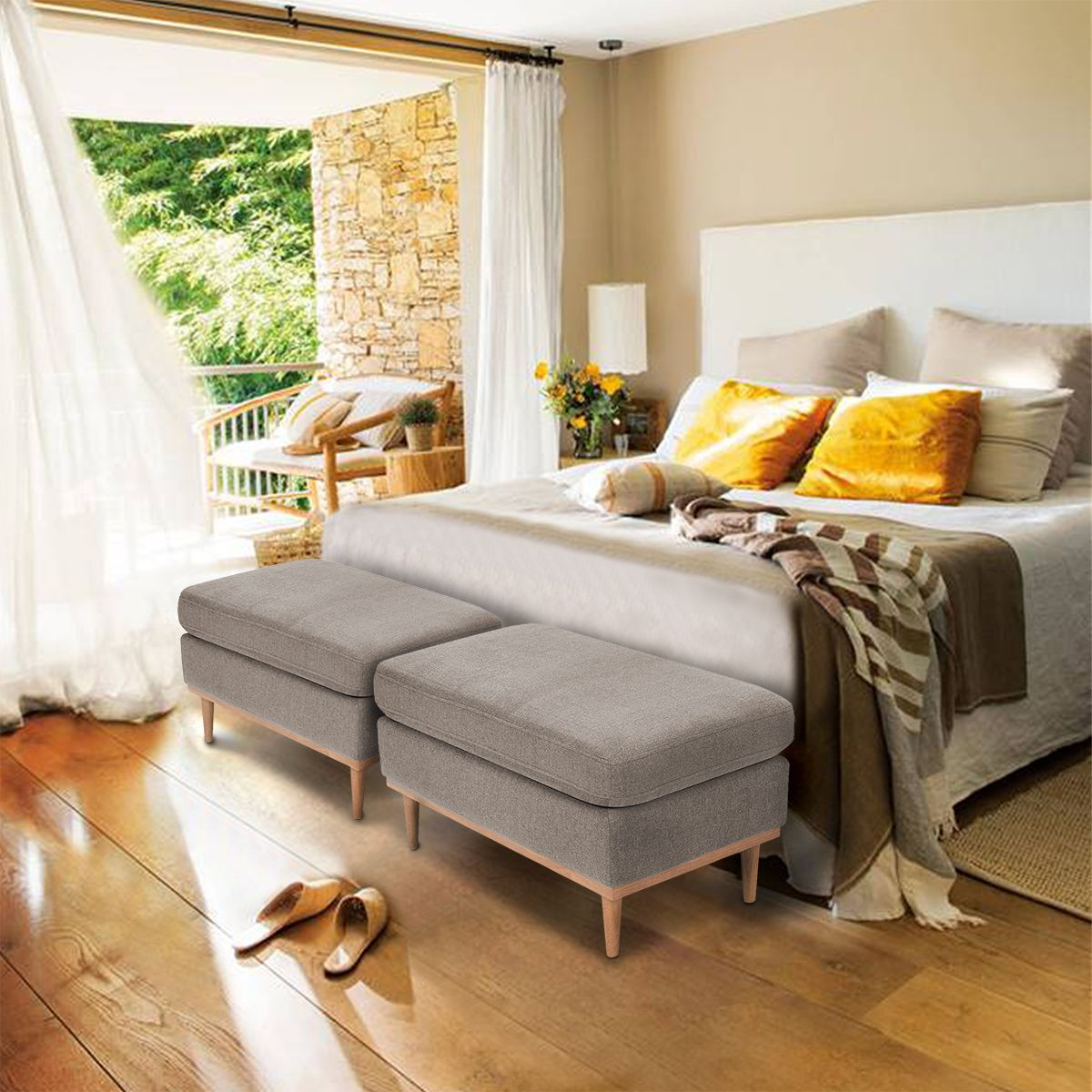La Isla / Puff otomano / Pie de cama Taurus es una pieza funcional, de lineas rectas, con aire vintage tipo MCM.  Tapizada en tela suave de alta resistencia, disponible en una paleta de colores neutros y suaves. Destaca por su comodidad y simpleza, un toque perfecto para salas de estar actuales.