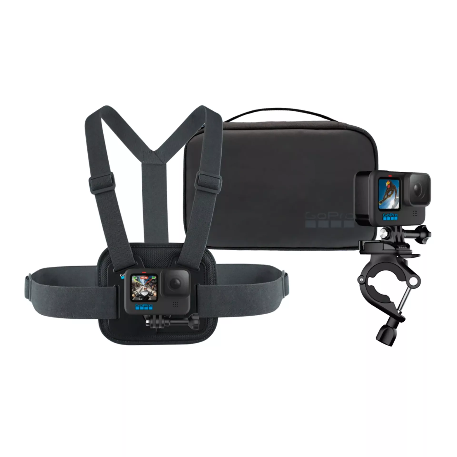 GOPRO - KIT DEPORTIVO 3 EN 1 PARA GOPRO AKTAC-0012 soportes populares para capturar contenido alucinante al andar bici, esquíar, remar y mucho más!Este kit incluye un arnes de pecho para capturar contenido inmersivo sin manos desde el punto de vista de quien lo use y un soporte para manillar del sillín para hacer capturas montando la cámara en el equipo. Todo incluido en un cómodo estuche compacto.Adecuado para > 14 años.El arnes de pecho ayuda a capturar contenido increíblemente inmersivo desde el punto de vista de quien lo use.El soporte para manillar del sillín se acopla fácilmente a los bastones para ofrecer nuevas e impresionantes perspectivas.El estuche cuenta con espacio para personalizar.Color: NEGRO.* NO incluye cámara GOPRO, ni otros artículos o accesorios. Imágenes sólo a modo de ejemplo.Garantía: 1 año.Contra Defecto de Fabricación.
