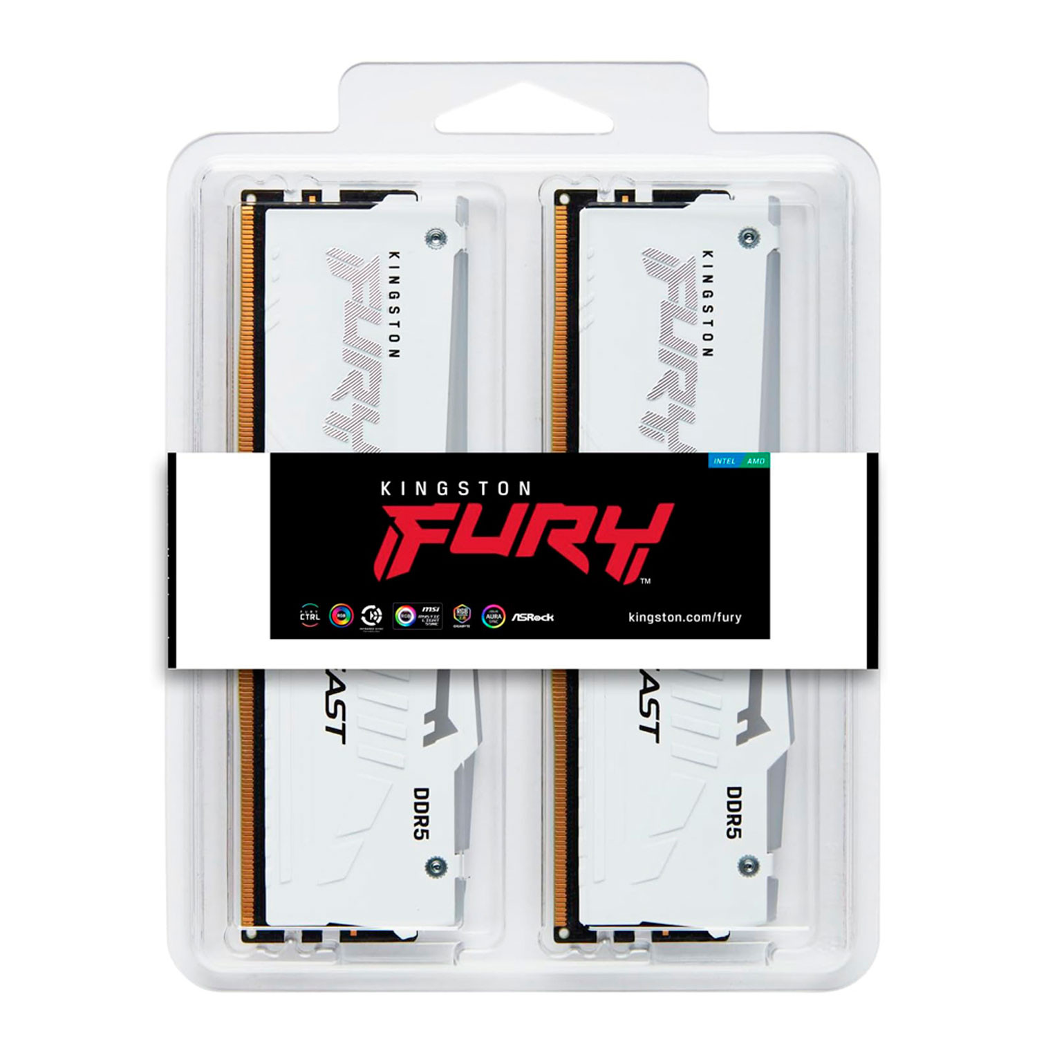 Kingston FURY Beast RGB - DDR5 - módulo - 32 GB - DIMM de 288 contactos - 2600 MHz / PC5-41600 - CL40 - 1.25 V - sin búfer - on-die ECC - blanco