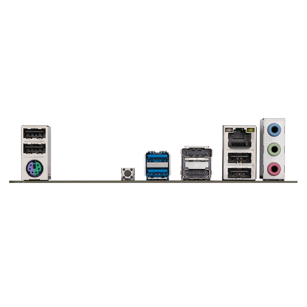• Conectores del panel posterior: 4 puertos USB 2.0/1.1 1 puerto PS/2 para teclado/ratón 1 botón Q-Flash Plus 2 puertos USB 3.2 Gen 1 1 1 DisplayPort 1 puerto HDMI 1 puerto RJ-45 3 conectores de audio