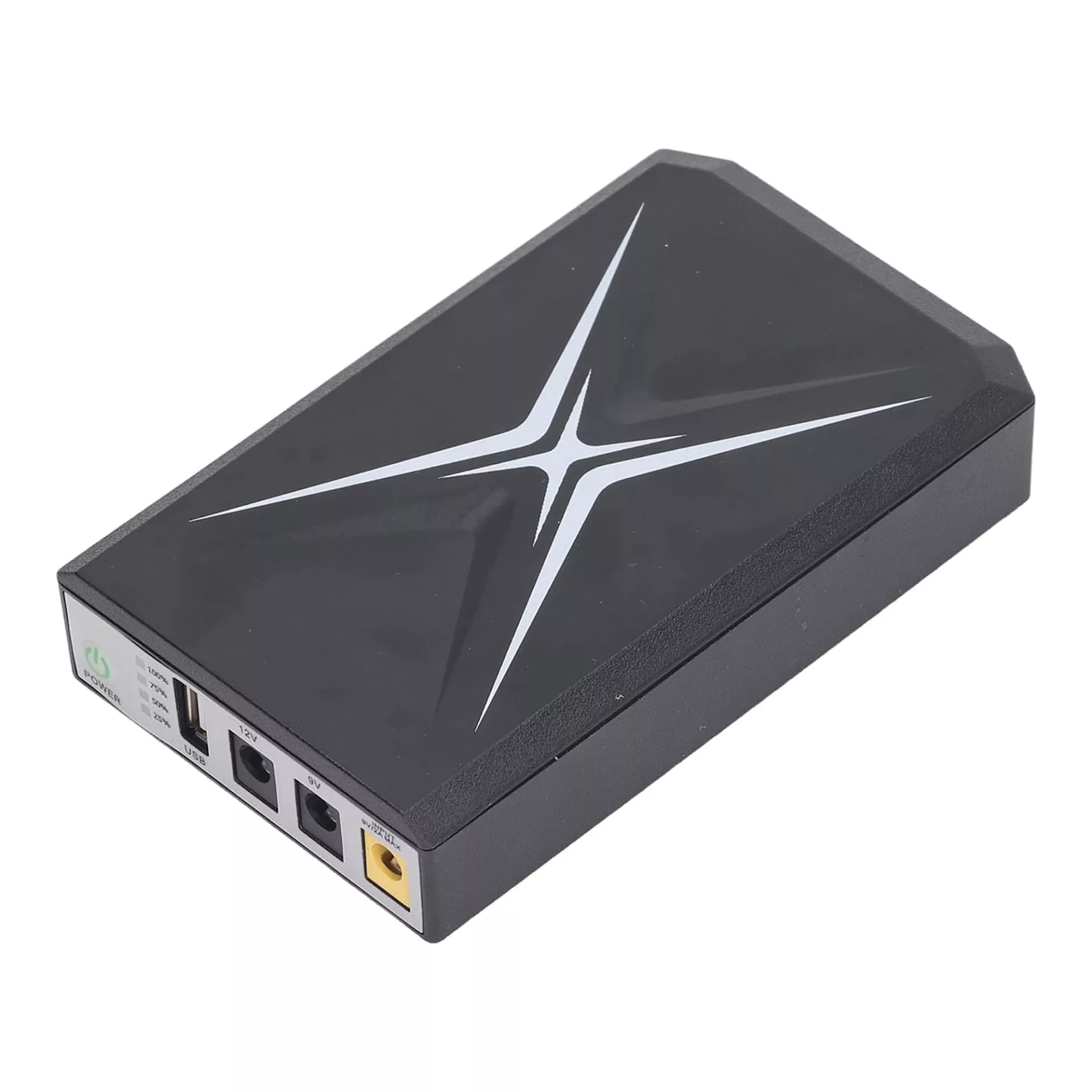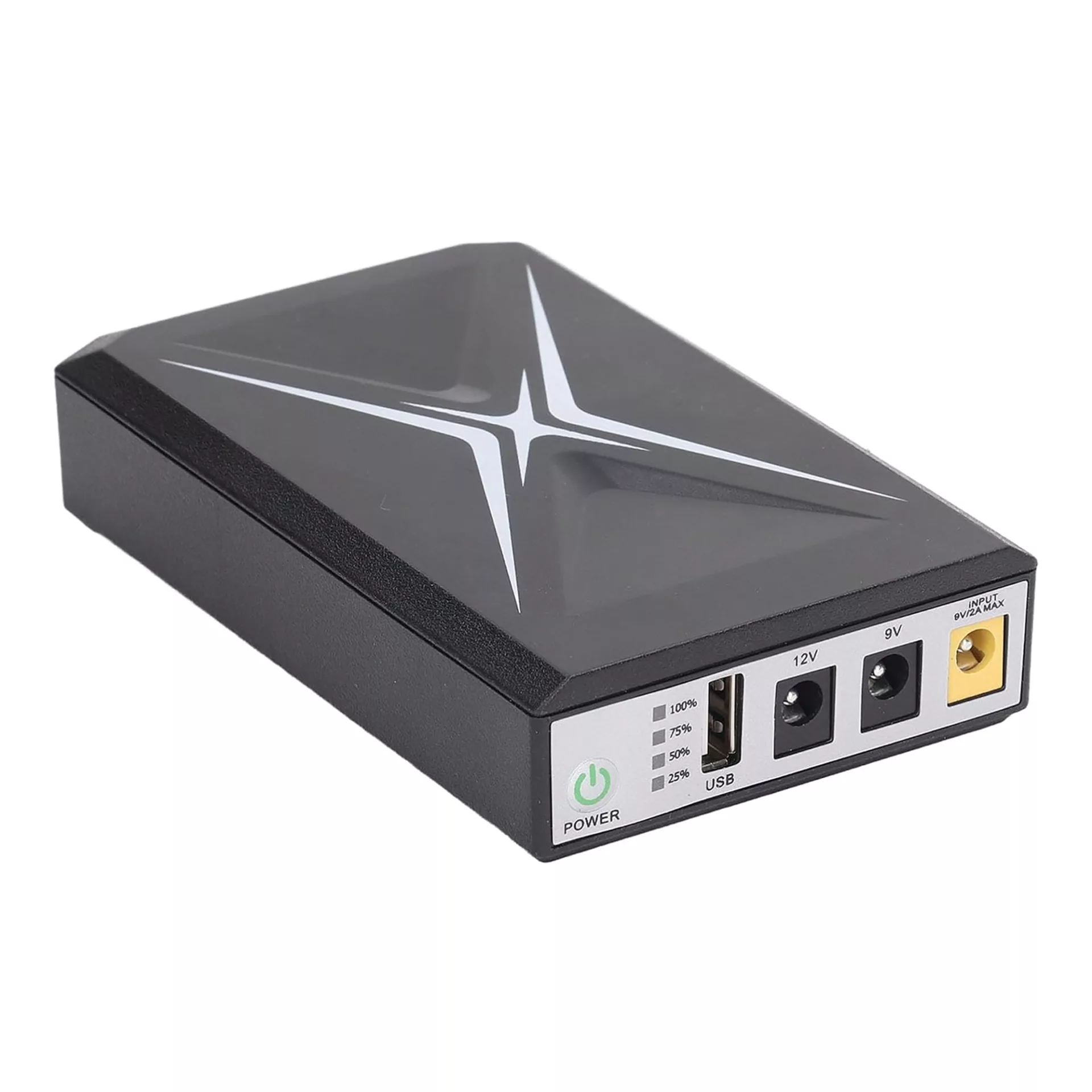 LUQEEG - MINI UPSDC10400 MINIFUENTE DE ALIMENTACIÓN ININTERRUMPIDA.Alimenta y carga tus dispositivos esenciales con facilidad, asegurando una conectividad y funcionalidad ininterrumpidas en cualquier situación.Compatibilidad Universal: Compatible con routers, smartphones, tablets, cámaras, monitores y más, ofreciendo una solución de alimentación versátil para varios dispositivos.Capacidad: 10400 mAh, 18 Wh.Entrada: 9V/2A.Salida: 1 x CC 12V/1A / 1 x CC 9V/1A / 1 x USB 5V/2A.Color: NEGRO.Garantía: 1 año.Contra Defecto de Fabricación.