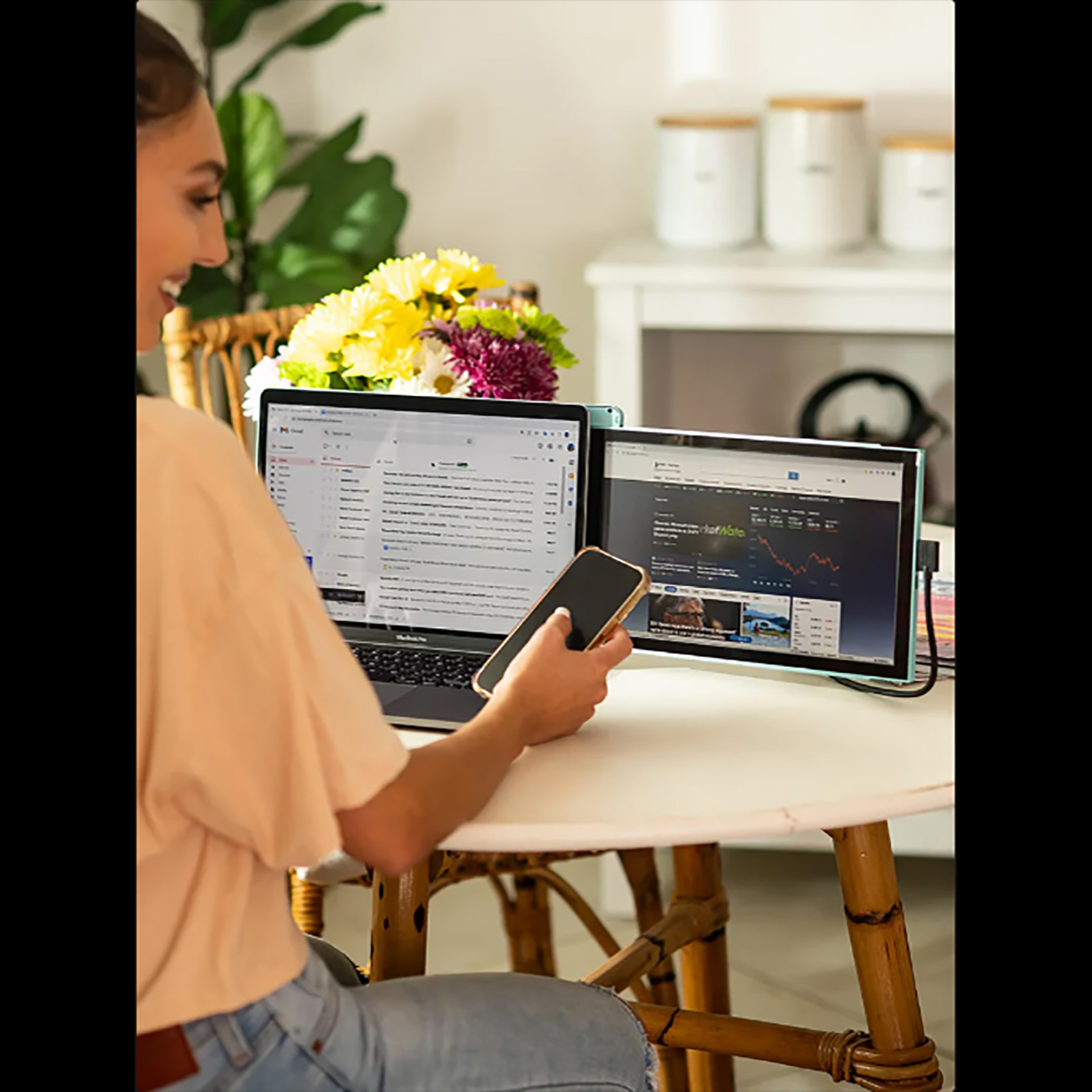 Modo horizontal: Permite usar el monitor como pantalla extendida o pantalla duplicada, evitando tener que alternar entre pestañas y ventanas.
