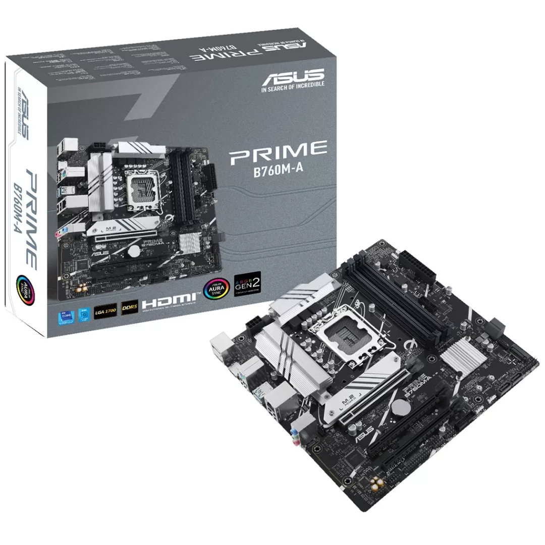 Motherboard Intel B760 (LGA 1700) mATX con PCIe 4.0, DDR5, dos puertos M.2, Realtek 2.5Gb Ethernet, DisplayPort, Dual HDMI, SATA 6 Gbps, USB 3.2 Gen 2 trasero, USB 3.2 Gen 1 Type-C frontal, Aura Sync.