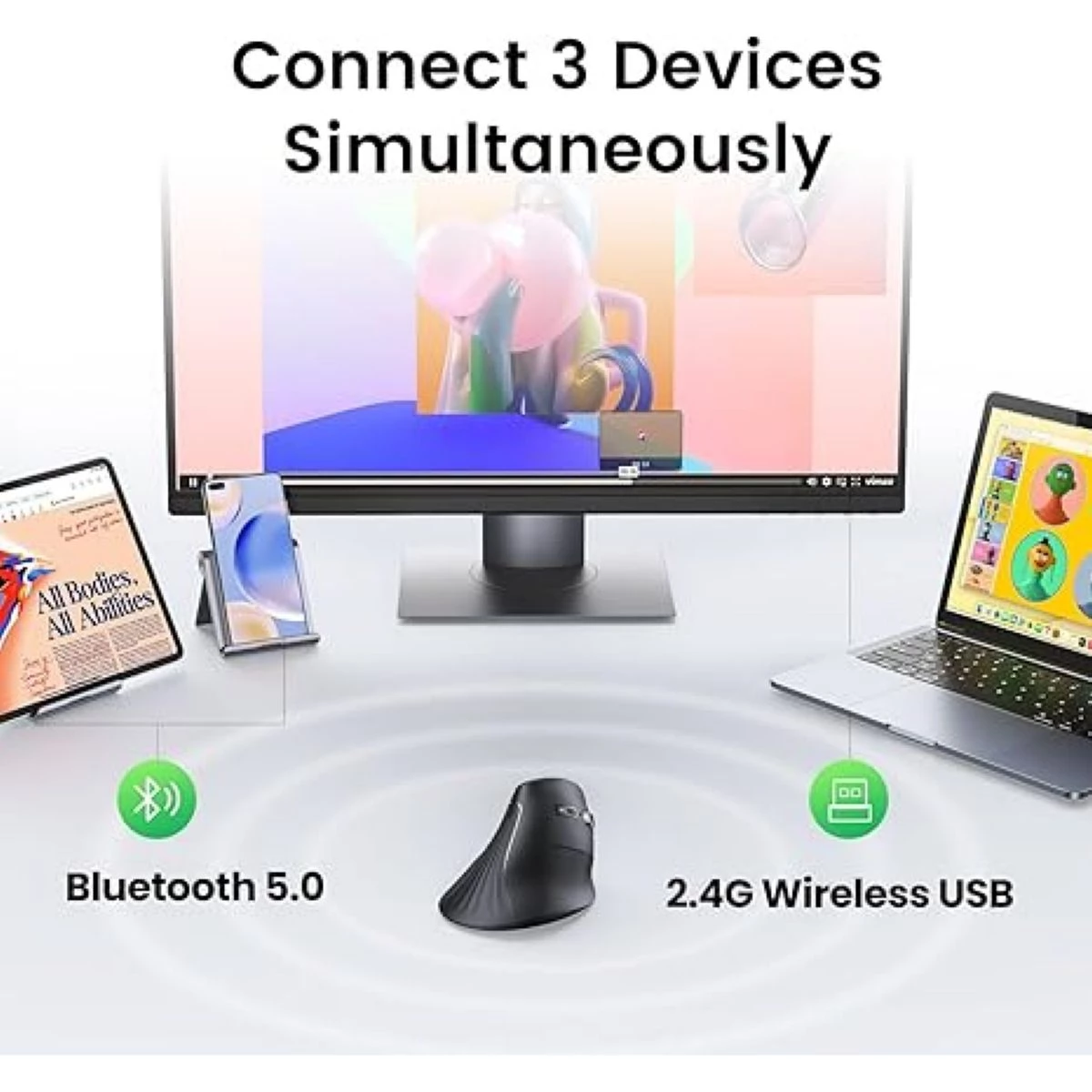 Mouse Ugreen Vertical Inalámbrico Bt 5.0 + 2.4G