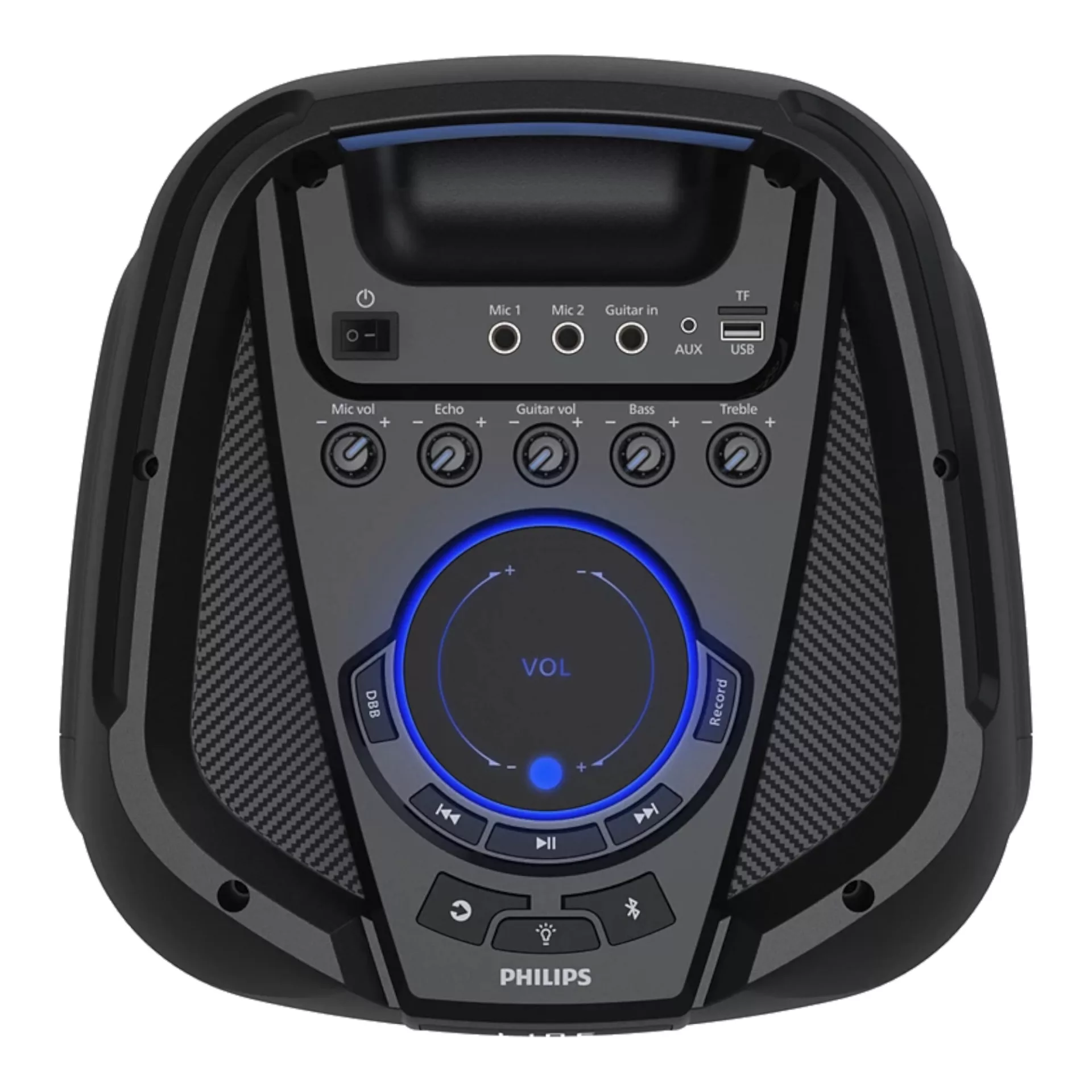 Este parlante para fiestas con Bluetooth, grande y potente, es la forma perfecta de celebrar. Presione el botón DBB para cambiar entre las diferentes preselecciones de graves y active el refuerzo dinámico de graves para darle a las canciones los sonidos graves que merecen.