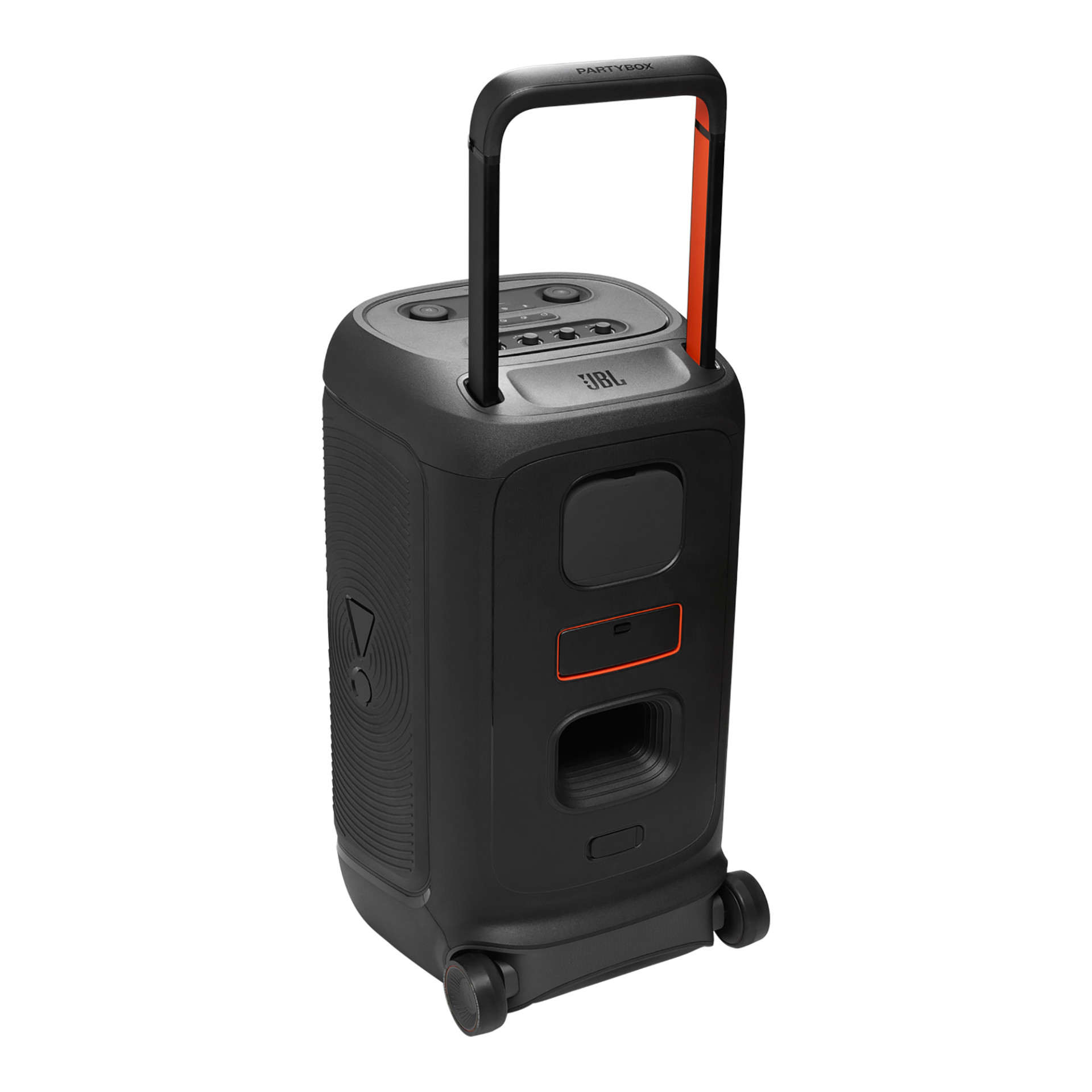 Donde sea que vayas, el JBL PartyBox 520 está listo para la acción con un asa extensible y ruedas giratorias para un transporte suave.