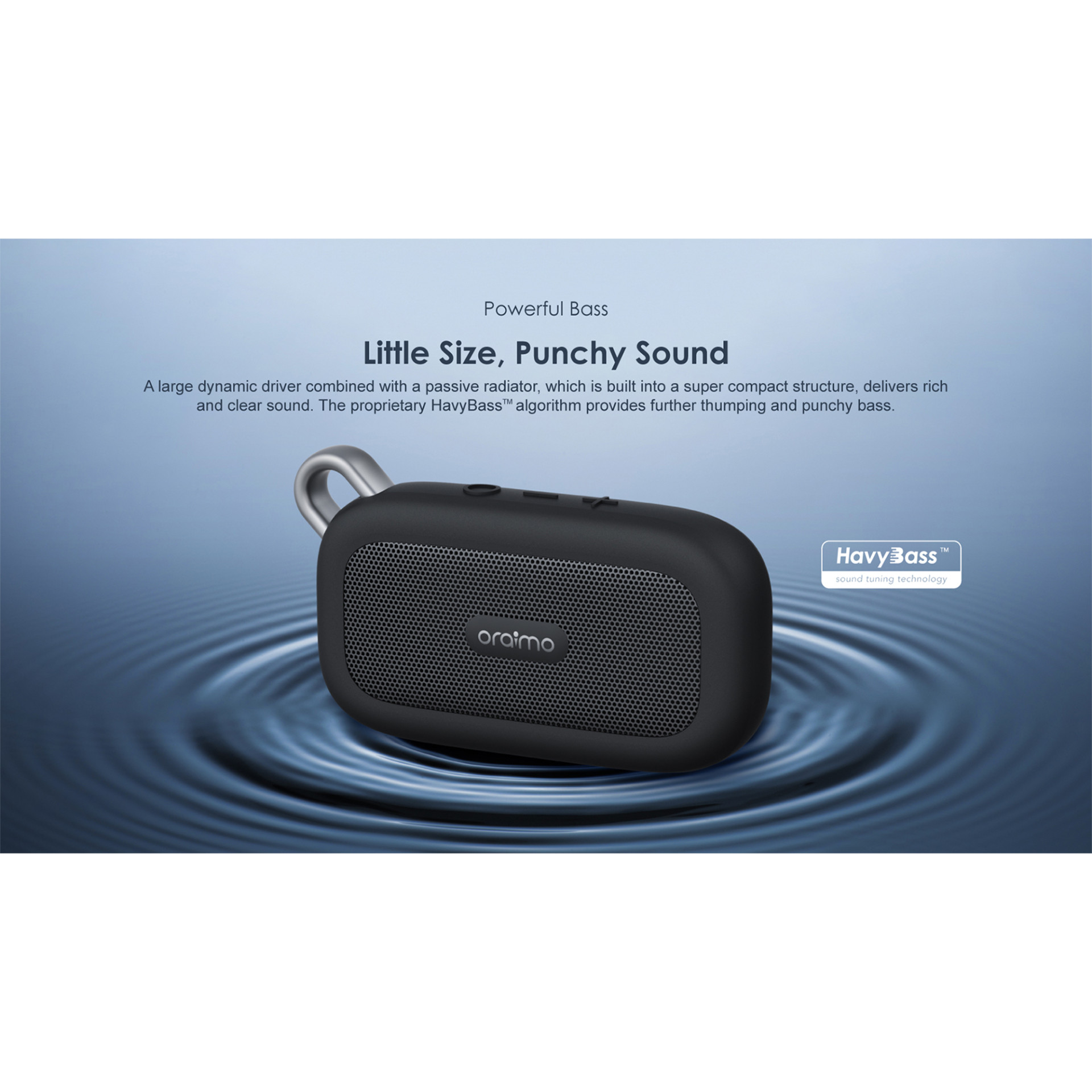 Un gran controlador dinámico combinado con un radiador pasivo, que está integrado en una estructura súper compacta, brinda un sonido rico y claro. El algoritmo patentado HavyBass proporciona graves más potentes y contundentes.