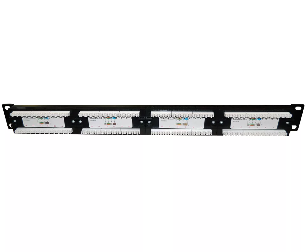 Nuevo. Presentación en caja Marrón. Patch panel montable en racks. 24 puertos categoría 5E. Funciona también con versiones anteriores. (ej. CAT 4 / CAT 5 / Etc.) Codificación de colores. Ideal para expansión de redes. Rápido y fácil de instalar. Totalmente compatible con redes GIGABIT. T568A y T568B pinouts. Color negro.