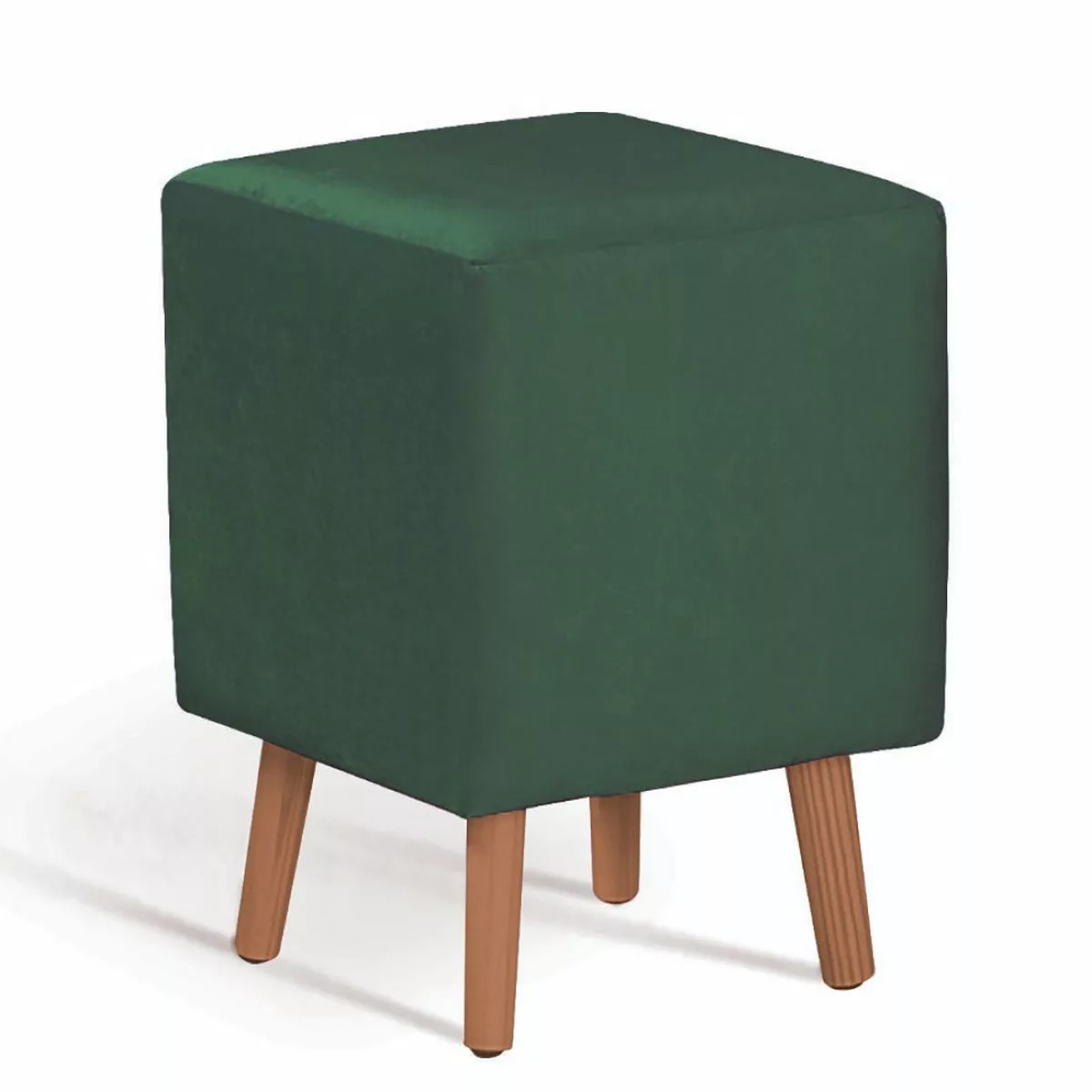 Puff Cube, usalo como banco, asiento extra, apoya-pies, solo o acompañado en ese rinconcito vacío, en el recibidor o dormitorio. Tapizado con tela de fácil mantenimiento con 4 patas de madera maciza color castaño que aportan firmeza y estabilidad.