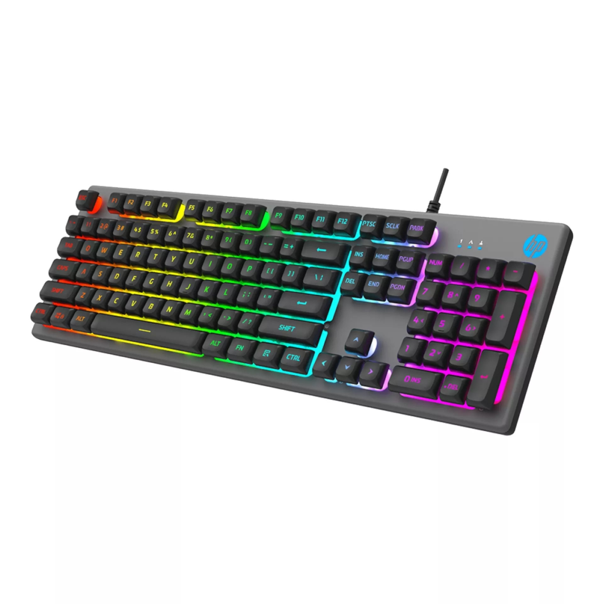HP - TECLADO CABLEADO USBK500F● Teclado mecánico con 104 teclas.● Retroiluminación multicolor.● Diseño elegante y moderno.● Resistencia a los arañazos.Conexión: USB 2.0.Compatibilidad: WINDOWS.Vida Útil: 10 millones de clicks.Voltaje: 5 V / 200 mA.Cable: 1,6 m APROX.Peso: 698 g APROX.Dimensiones: 440 x 135 x 17 mm APROX.Color: GRIS.Garantía: 1 año.Contra Defecto de Fabricación.