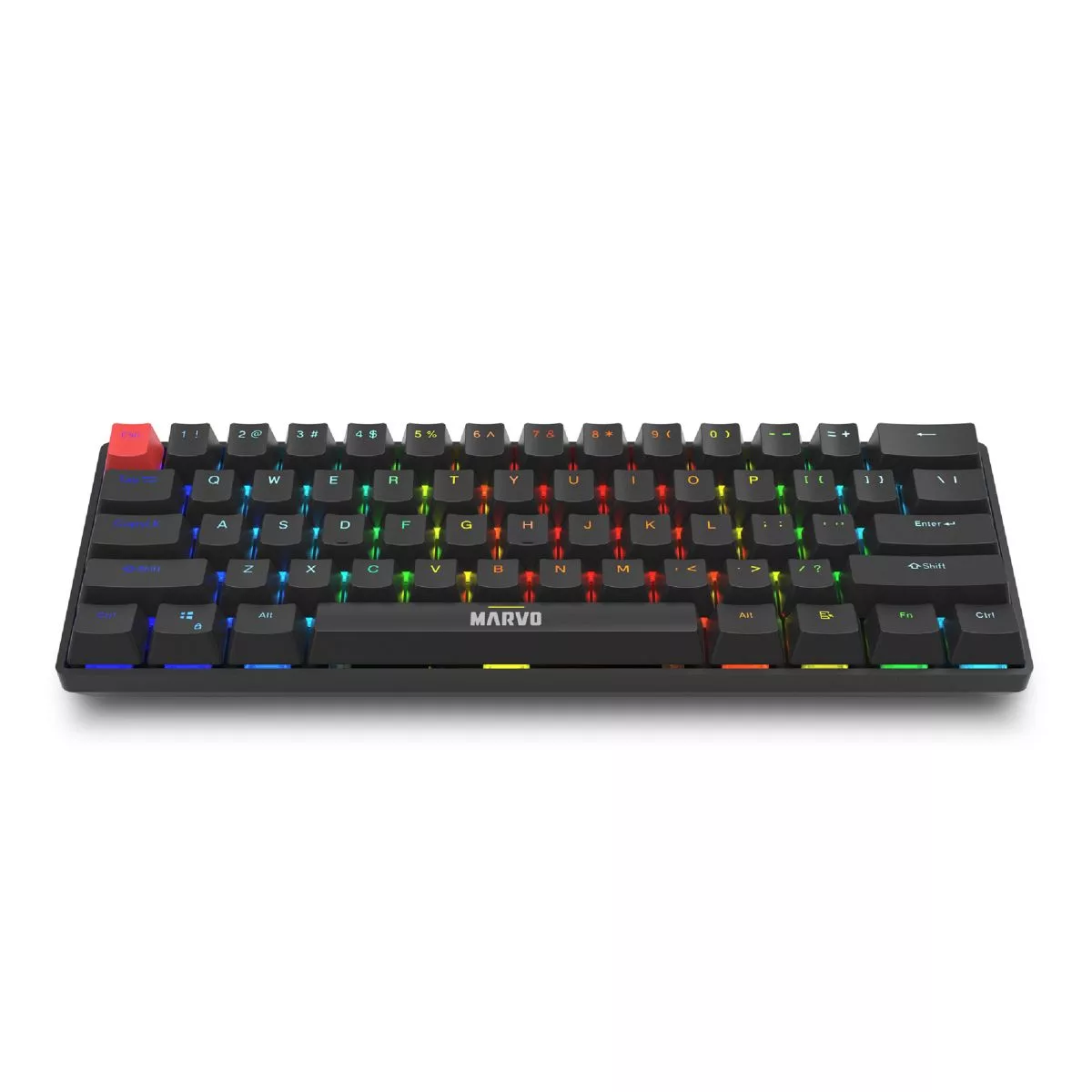 Marca Marvo Part Number KG933G-SP Color Negro Conexión USB-C (Cable Mallado) Mecanismo Mecánico Switch Red Switch Iluminación RGB teclado numérico No Incluye Layout Teclado Español (SP) Diseño Compacto 60% / Teclas 61