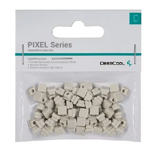 100 piezas de silicona. ¡Sé único, sé creativo, sé original y personaliza tu carcasa DeepCool con las coloridas piezas de la serie PIXEL! Cada pieza de silicona de la serie PIXEL está moldeada y cortada para que encaje perfectamente en las rejillas de numerosas carcasas DeepCool. Color: Gris Material: Silicona Medidas: 5,4 x 5,4 x 4 mm Peso: 9.8 g (100 piezas)