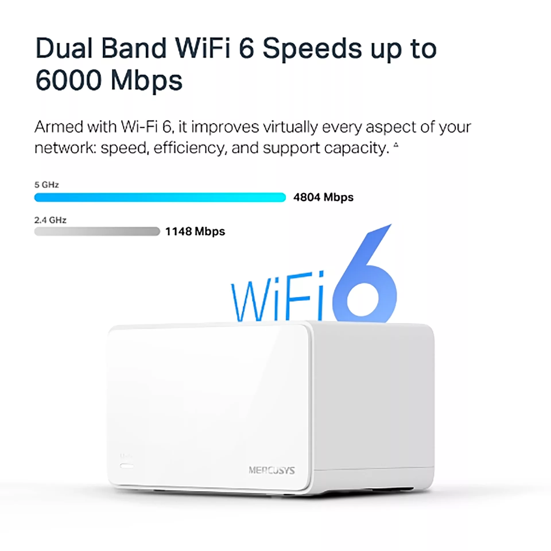 WIFI 6 de doble banda con velocidades de hasta 6000 Mbps.