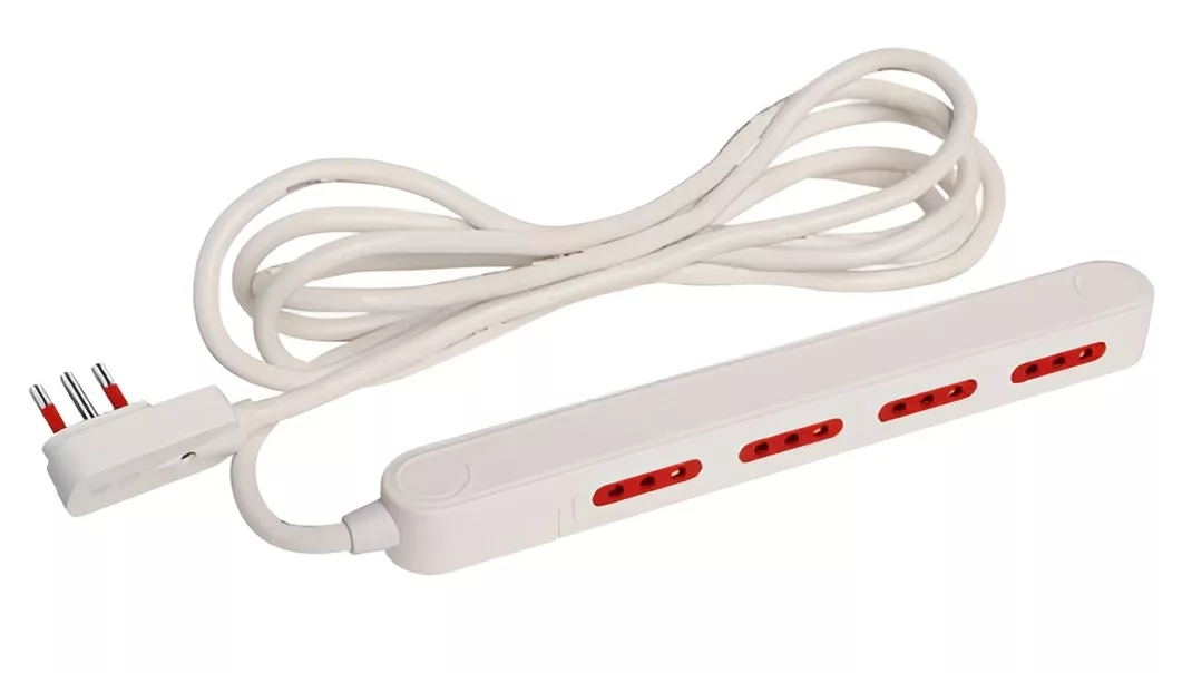 4.5 cm de espesor. Material: Plastico. Color: Blanco Potencia maxima: 2500W. Amperaje 10A. 4x 3 en linea. Largo de Cable: 3m.
