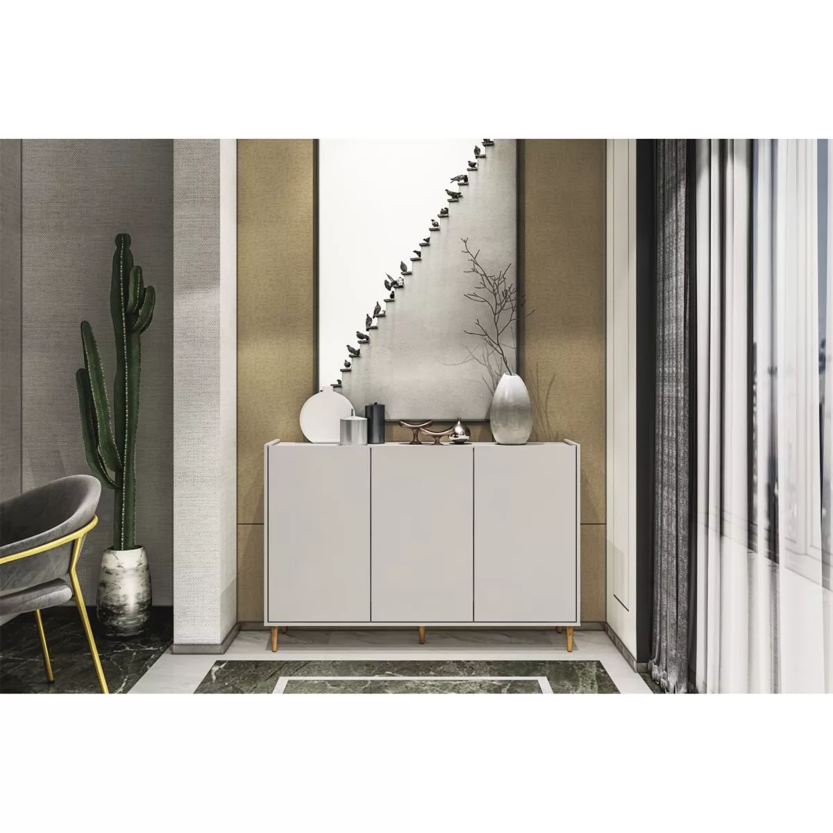Aparador Argos, es una pieza funcional de estilo minimalista. Perfecta para guardado de vajilla, mantelería o cualquier cosa que quieras tener a mano pero no tan visible en la sala o comedor. Con 3 puertas, estante intermedio en cada una de ellas y gran capacidad de guardado.
