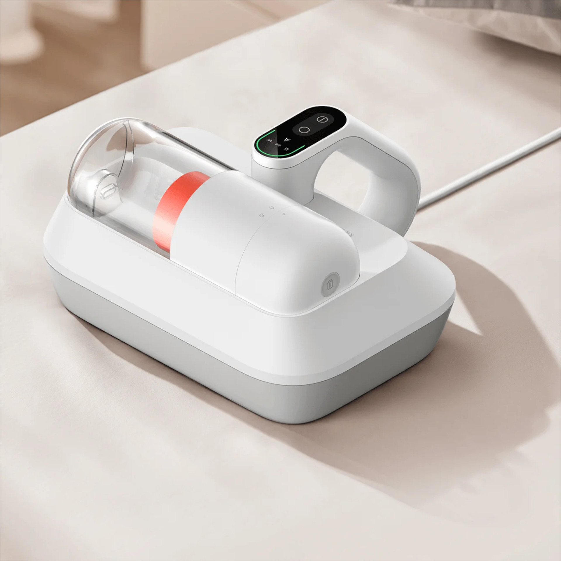 Cuenta con un motor de alto rendimiento de 400 W que libera una potente succión ciclónica de 14 kPa y una amplia boquilla de entrada de 20 cm para garantizar la penetración profunda en la ropa de cama y extraer los ácaros ocultos y sus excrementos.