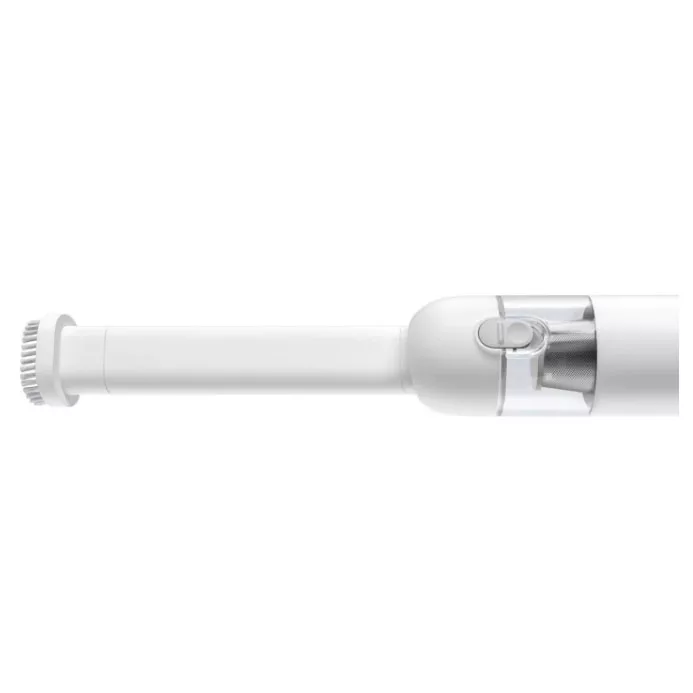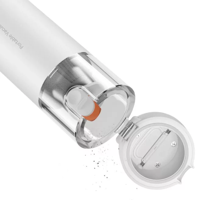 Potente y compacta Sin cables. Tamaño compacto Diseño ligero. Solo 0,5 kg Gran capacidad de succión: 13 000 Pa. Motor sin cepillo de 88000 RPM Boquillas multifunción para múltiples necesidades de limpieza Elimina el polvo con un solo clic Especificaciones: Peso: 0,5 kg aprox. (unidad principal) Dimensiones: 267 × 55 × 55 mm Capacidad del depósito: 0,1 L Potencia y presión de succión: Máximo: 30 AW, 13 KPa Estándar: 8 AW, 6 KPa Filtro HEPA Autonomía de Batería: hasta 30 minutos A máxima potencia: hasta 9 minutos Potencia nominal: 120 W Tensión nominal: 10,8 V Entrada corriente: 100–204 V~, 50/60 Hz, 0,35 A Salida: 5,0 V = 2,0 A, 10,0 W