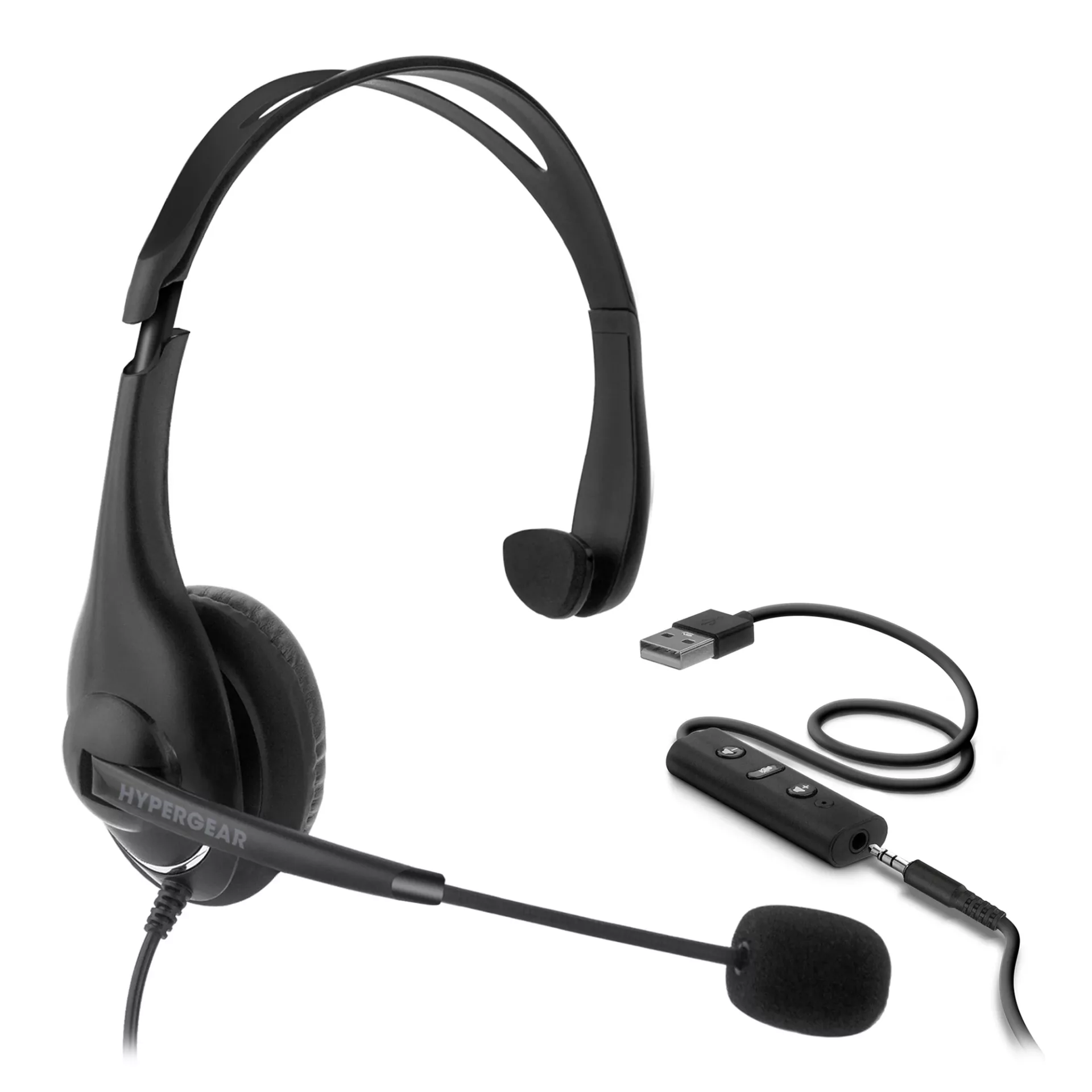 HYPERGEAR - AURICULARES CABLEADOS PROFESIONALESV100 OFFICEAUMENTA LA PRODUCTIVIDAD LABORAL Y DE LLAMADAS.Con el V100 Office házte oír claramente en cualquier lugar, ya sea en lugares de trabajo concurridos o incluso mientras viajas.Amplia compatibilidad de dispositivos.Los auriculares se conectan a tu PC / MAC, notebook, smartphone, tablet, o cualquier otro dispositivo mediante el conector 3,5 mm, o el adaptador USB para un conveniente plug & play.Plug & Play. Desembalar, enchufar y usar!No te preocupes por personalizar la configuración de tu computadora o instalar controladores y aplicaciones, el V100 Office está listo para funcionar nada más sacarlo de la caja!Música y llamadas de alta definición.Los controladores de 40 mm personalizados ofrecen un audio potente para amplificar tu día con un sonido completo y equilibrado. Disfruta de conversaciones claras en ambos extremos de la llamada o de una experiencia auditiva dinámica.Control a tu alcance.Los controles en línea del adaptador USB te permiten controlar la configuración del volumen y del micrófono.Micrófono con brazo giratorio y flexible.Te permite ajustar el ángulo y la posición perfectos para máxima claridad y comodidad.Diseñado para comodidad durante todo el día.La diadema ajustable y las suaves almohadillas para la sien y el oído brindan una comodidad extrema durante largas llamadas o sesiones de escucha. La claridad se encuentra con la comodidad.El V100 Office garantiza que tu voz se escuche claramente en cualquier lugar, ya sea en lugares de trabajo concurridos o mientras viajas. Con dos formas de conectarte, podras atender llamadas o reproducir música en todos tus dispositivos. Conectores: 3,5 mm / adaptador USB.Peso: 79,4 g APROX.Color: NEGRO.Garantía: 1 año.Contra Defecto de Fabricación.