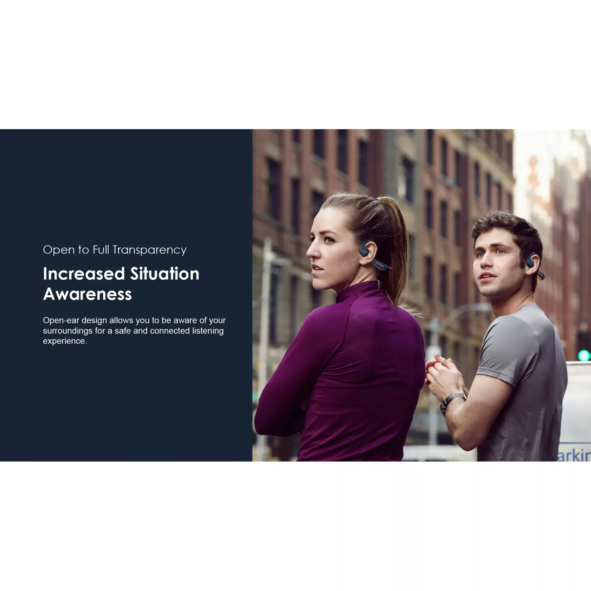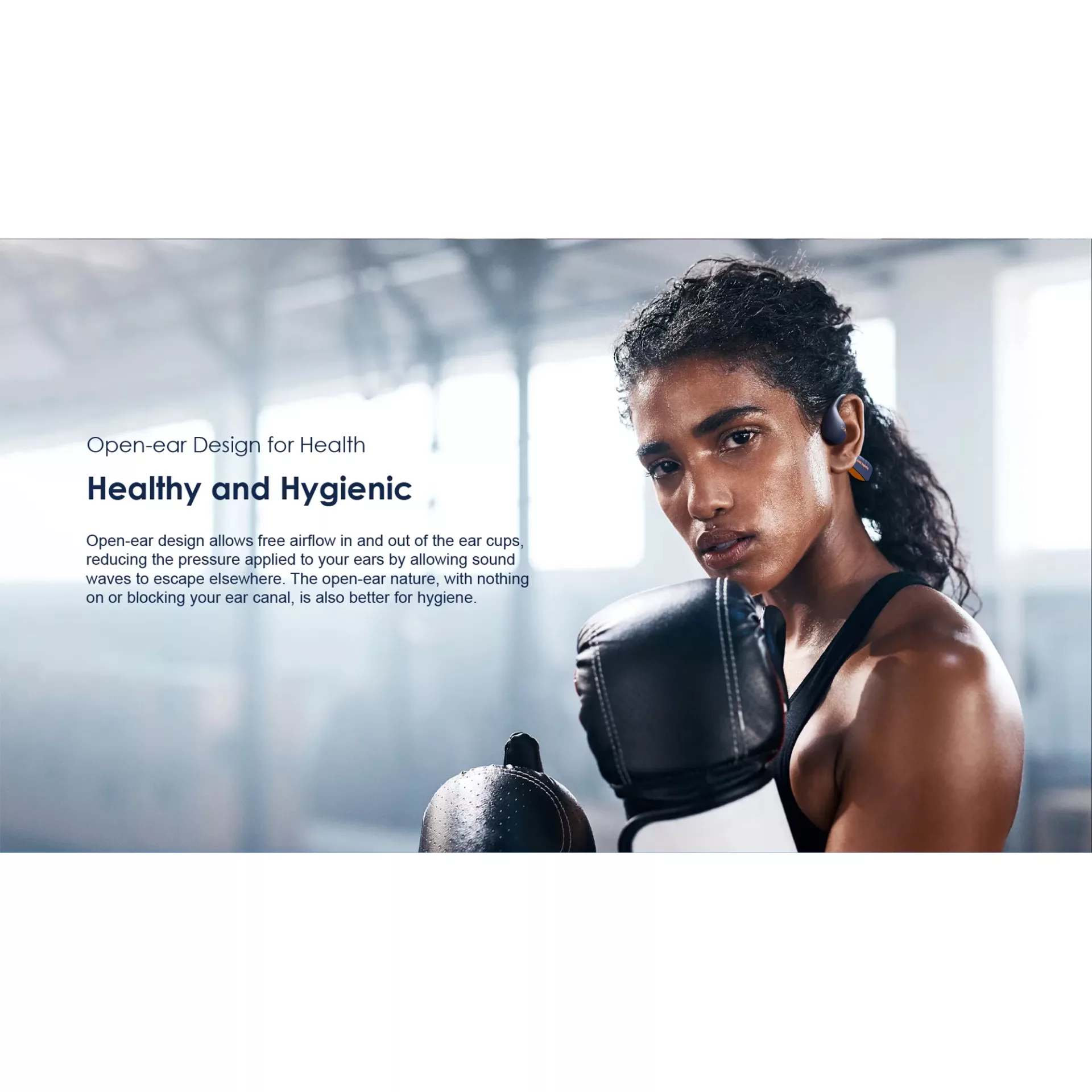 ORAIMO - AURICULARES DEPORTIVOS INALÁMBRICOSOPENCIRCLETOPN-40DAURICULARES DEPORTIVOS, INALÁMBRICOS, LIVIANOS Y CÓMODOS.DISEÑO OPEN-EAR: Permite colocar los controladores fuera de los oídos, lo que podría reducir el daño del tímpano causado por un volumen alto. Además, garantiza la circulación del aire para prevenir el crecimiento bacteriano. También permite escuchar lo que sucede alrededor, como el tráfico y otros sonidos, lo que ayuda a mantener la conciencia espacial en cualquier momento y no perderse ninguna información importante, siendo más seguro para actividades al aire libre.ALGORiTMO HAVYBASS: Sintoniza y realza los graves, lo que permite que el woofer se escuche claramente a diferentes volúmenes.● Ajuste ergonómico y seguro.● SONIDO ESTÉREO Y VOZ HD.● Micrófonos reductores de ruido.● Modo de juego de baja latencia.Certificación: IPX5, a prueba de transpiración y salpicaduras de agua.Conectividad: BLUETOOTH 5.0.Conductores: 16 mm dinámicos.Tiempo de Reproducción: 16 h APROX (con carga completa) / 3,5 h APROX (con carga rápida de 10 min).Color: AZUL.Link del Fabricante.Garantía: 1 año.Contra Defecto de Fabricación.