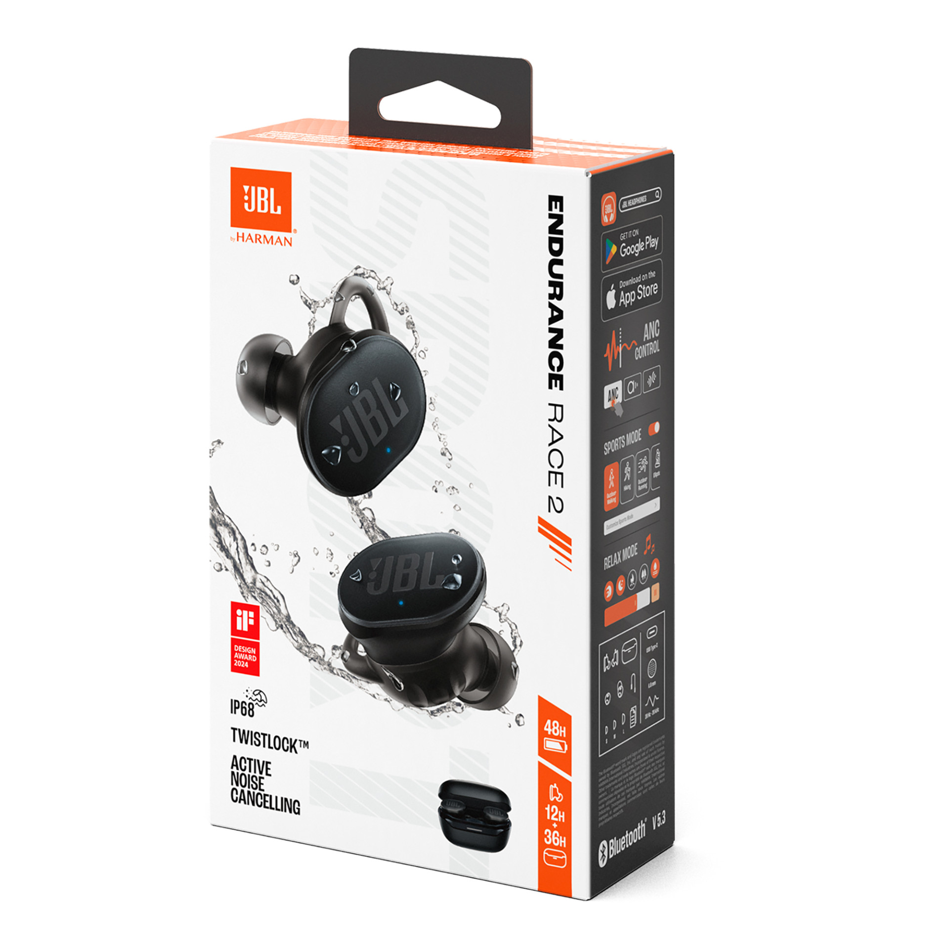 Los JBL Endurance Race 2 están diseñados para soportar los entrenamientos más duros. Su índice de protección IP68 significa que son totalmente resistentes al agua y al polvo, con una protección completa contra partículas sólidas y con capacidad de resistir una profundidad de más de 1 metro tanto en agua dulce como en el mar. Incluso el estuche de carga es resistente al agua con índice de protección IPX2, por lo que puede acompañarte en el próximo día lluvioso que tengas que soportar.