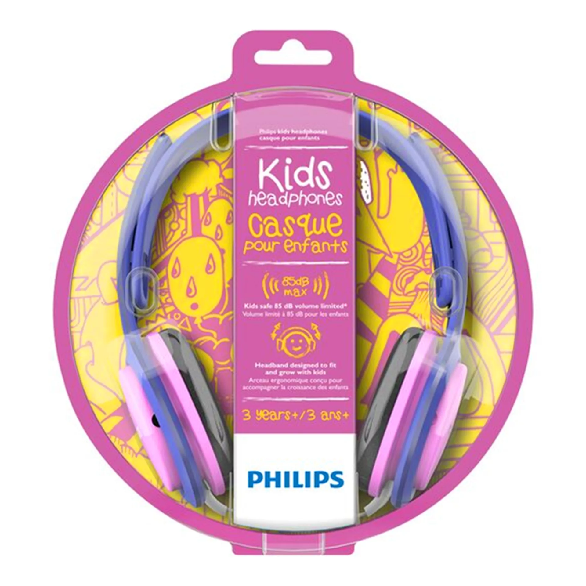 PHILIPS - AURICULARES CABLEADOS PARA NIÑOSSHK2000PK/00Los mejores amigos de los niños.Los auriculares adecuados para introducir a los pequeños melómanos en el mundo del sonido. Sus graves claros y su divertido diseño se han personalizado para los niños en etapa de crecimiento y son lo suficientemente resistentes para adaptarse a cualquier situación. El limitador de volumen de 85 dB hace que la música sea divertida y segura.Volumen máximo limitado a 85 dB para disfrutar de la música de manera segura.Con los auriculares para niños puedes estar tranquilo, ya que los niveles de volumen son seguros para ellos. El volumen se ha ajustado con un límite máximo de 85 dB para que disfruten de manera segura.Los parlantes con controlador de neodimio de 32 mm ofrecen un sonido puro y equilibrado.El neodimio es el mejor material para crear un potente campo magnético capaz de incrementar la sensibilidad de la bobina móvil del parlante, mejorar la respuesta de los graves y brindar un sonido puro y equilibrado.Diseño sin tornillos y duradero para una reproducción muy asidua.El diseño sin tornillos y duradero permite extraer y colocar en su sitio las piezas de los auriculares de forma sencilla.Almohadillas suaves para las orejas que proporcionan un ajuste cómodo y seguro.Las almohadillas están totalmente acolchadas con espuma suave para disfrutar de lo máximo en comodidad y seguridad.Banda sujetadora ergonómica y ajustable que se adapta al crecimiento del niño.La sencilla banda sujetadora ergonómica es totalmente ajustable para que se adapte cómodamente a la cabeza de cualquier niño a medida que crece.Soporte de sujeción ultraliviano que ofrece una comodidad y un ajuste superiores.La compacta banda sujetadora es tan ultraligera y cómoda que es posible llevarla durante un sinfín de horas. Los niños hasta se olvidarán de que la llevan puesta.Conectividad: 3,5 mm.Potencia: 40 mW (máxima de entrada).Sistema Acústico: Cerrado.Tipo de Altavoz: Dinámico.Diámetro del Parlante: 32 mm.Tipo de Imán: Neodimio.Volumen Limitado:
