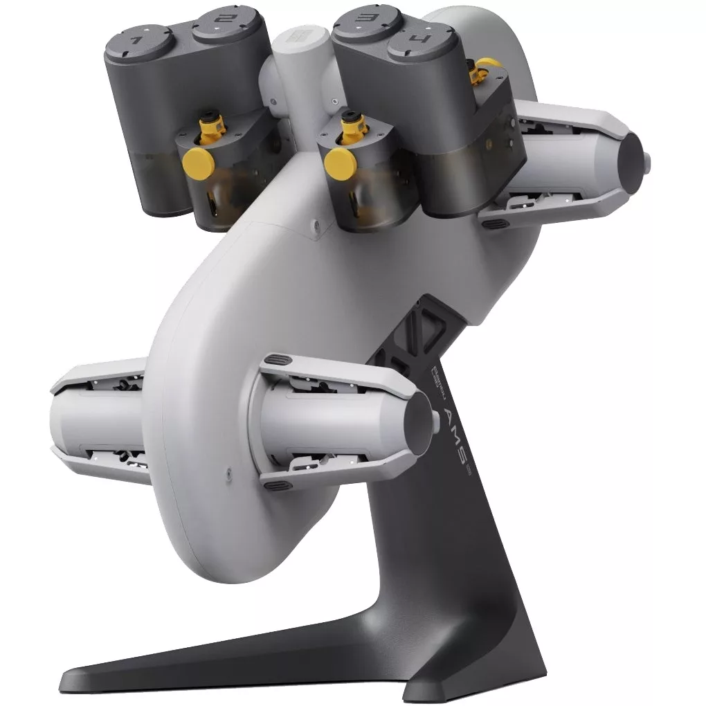 Impresión con múltiples colores y materiales Capaz de trabajar con múltiples colores y materiales distintos. Sistema AMS Filament Backup cambia automáticamente a otro carrete cuando el actual se agota, evitando interrupciones. Compatibilidad mejorada para distintos carretes. Fácil mantenimiento. Identificación de filamentos vía RFID. Compatible con impresoras Bambu Lab de las series P2, X1, P1, A1. Especificaciones: Filamentos soportados: PLA, PETG,ASA, PET, PA, PC, PVA (seco), BVOH (seco), PP, POM, HIPS y Bambu PLA-CF / PAHT-CF Filamentos soportados pero no recomendados: Bambu PLA Glow, Bambu PETG-CF, y otros PLA Glow-in-the-dark genéricos Filamentos no soportados: TPE, TPU, PVA (húmedo), BVOH (húmedo), Bambu PET-CF / PA6-CF / TPU 95A y otras marcas de filamento que contengan fibra de carbono o de vidrio Diámetro máximo de filamento: 1.75 mm Tamaño de carrete soportado: ancho 40-68mm, diámetro interior 53-