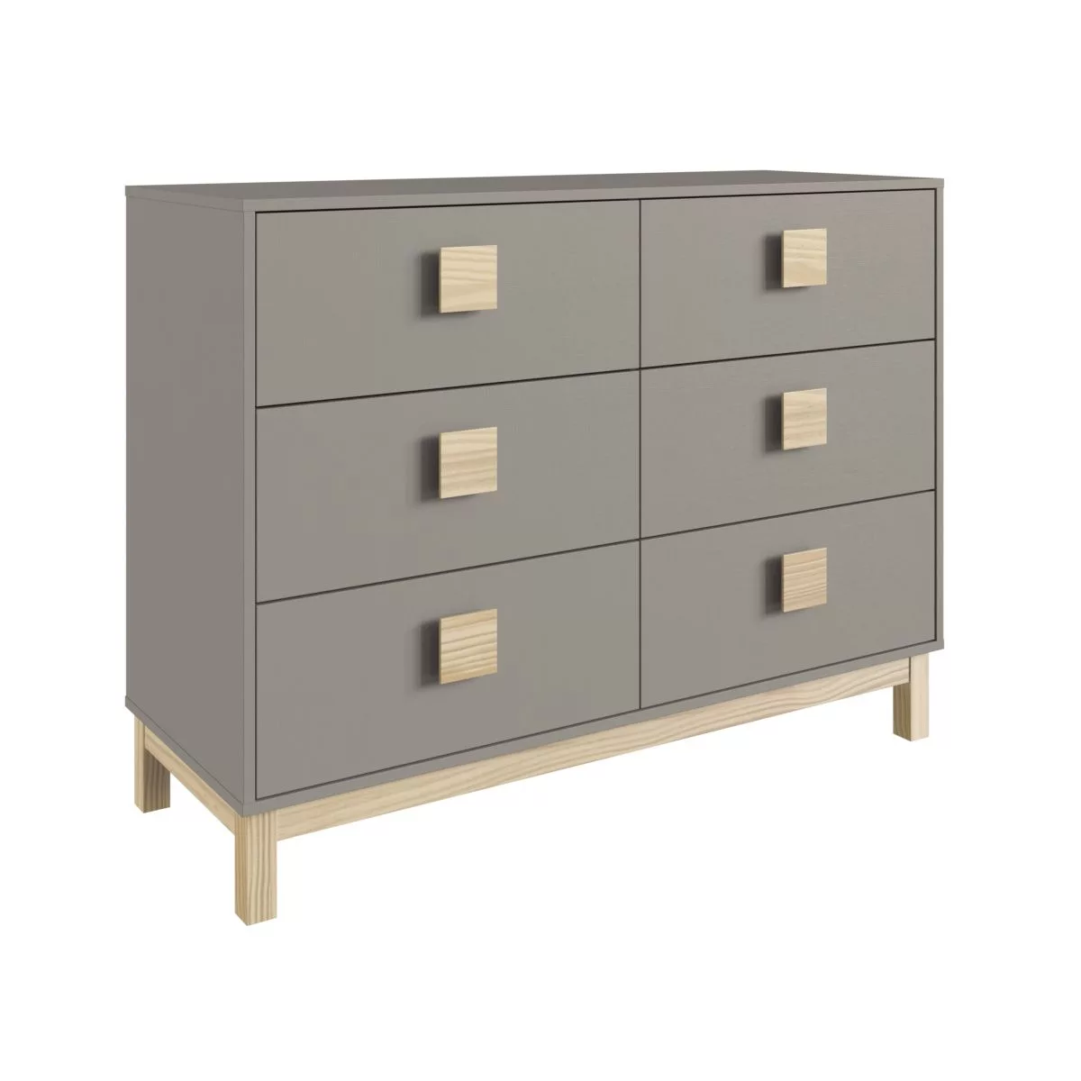 Sus 6 cajones con rieles telescópicos facilitan y optimizan el espacio así como su estilo y diseño aportan calidez al ambiente con sus tiradores y patas de madera maciza que la convierten en un diferencial