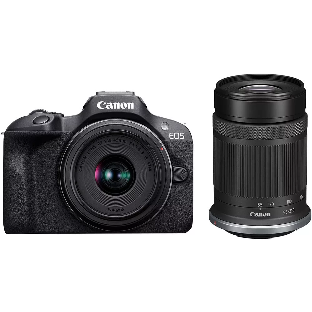 Video 4K UHD 24p Incluye los siguientes lentes: - RF-S 18-45mm f/4.5-6.3 IS STM - RF-S 55-210mm f/5-7.1 IS STM Sensor CMOS 24.2MP APS-C. Procesador de imagen DIGIC 8. Video 4K 24p con recorte, Full HD 60p. Dual Pixel CMOS AF con 143 zonas de AF. Disparador electrónico de 6.5 fps. OLED EVF 2.36m-Dot . Pantalla LCD de 3" 1.04m-Dot. Conectividad Wi-Fi y Bluetooth con Slot para tarjeta SD.