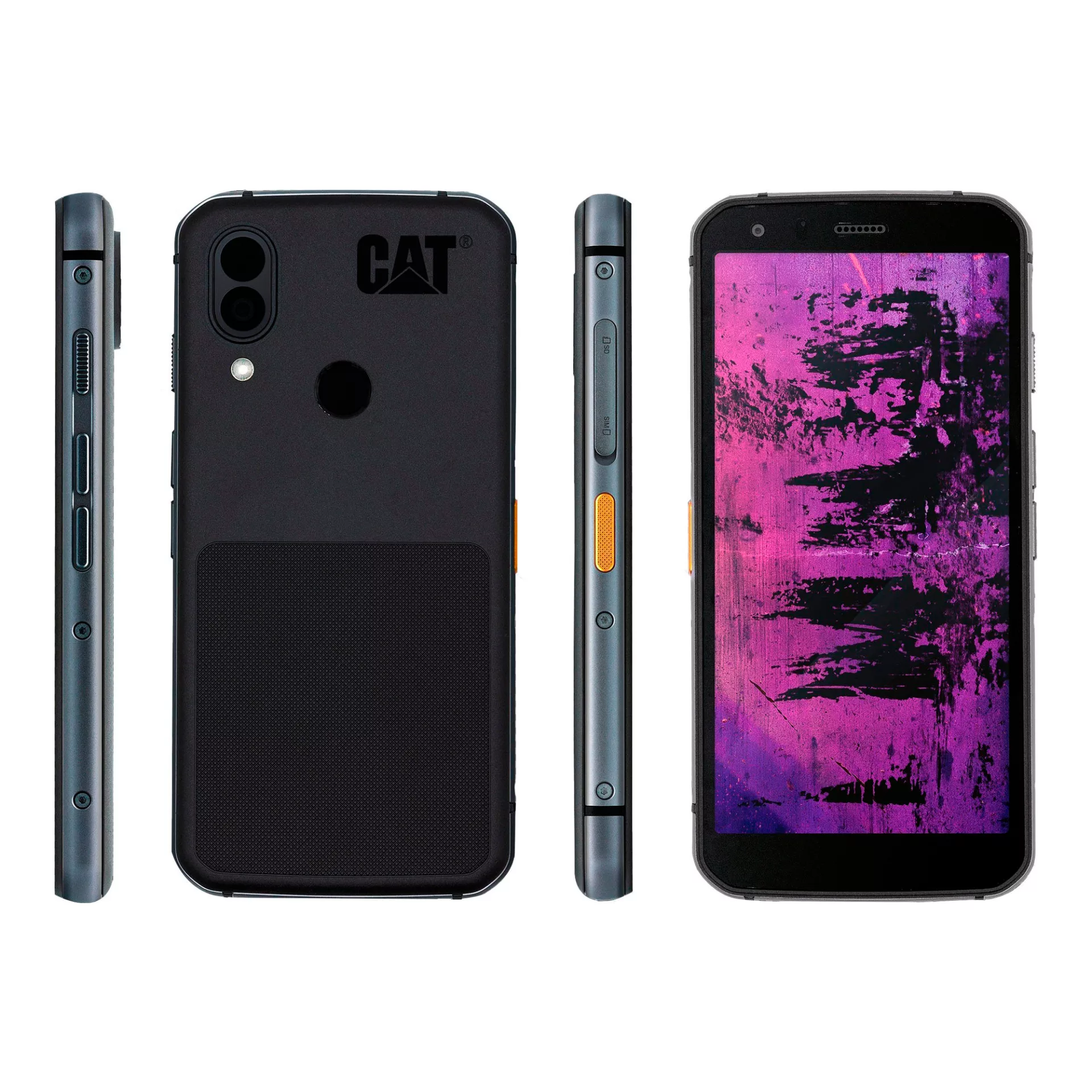 CAT - SMARTPHONES62 PROCertificado IP68 / IP69. SUMERGIBLE: Hasta 1,5 metros y 35 minutos. CAÍDA: Hasta 1,8 m.Cumple con MIL-STD-810H, protegido contra: Sal, Polvo, Humedad, Lluvia, Vibración, Transporte, Radiación Solar, Choque Térmico.Pantalla: 5,7" MULTITÁCTIL IPS LCD, 1080 x 2160 píxeles. Vidrio Gorilla 6.DUALSIM.2G: B2 (1900 MHz), B3 (1800 MHz), B5 (850 MHz). COMPATIBLE CON ANTEL, CLARO Y MOVISTAR.3G: B1 (2100 MHz), B2 (1900 MHz), B5 (850 MHz). COMPATIBLE CON ANTEL, CLARO Y MOVISTAR.4G: B2 (1900 MHz), B4 (1700 MHz / 2100 MHz). COMPATIBLE CON ANTEL, CLARO Y MOVISTAR.Procesador: OCTA CORE (QUAD CORE 2,2 GHz, Kryo 260 Gold, QUAD CORE 1,8 GHz, Kryo 260 Silver).Sistema Operativo: ANDROID 10.Memoria RAM: 6 GB.Memoria ROM: 128 GB.Lector de Tarjetas: MICRO SDXC.Cámara Principal Imagen: DOBLE: 12 MP, f/1.8, (wide), 1/2.55", 1.4µm, dual pixel PDAF / Cámara térmica FLIR (módulo Lepton 3.5), imágenes térmicas, paletas de calor, medidor de punto. Flash LED.Cámara Principal Video: 1080p@30fps, gyro-EISCámara Selfie Imagen: 8 MP.Cámara Selfie Video: 1080p@30fpsConectividad: WIFI 802,11 a/b/g/n/ac, BLUETOOTH 5.0.GPS.NFC.RADIO FM.Sensores: Acelerómetro, Brújula, Giroscopio, Huella Dactilar, Proximidad.Puertos: USB C 2.0 x 1, 3,5 mm x 1.Peso: 248 g APROX.Dimensiones: 158 x 77 x 12 mm APROX.Batería: LI-ION 4000 mAh (NO extraíble).Color: NEGRO.¿Sabías que todo lo que hay en la tierra emita o refleja energía térmica? La aplicación My Flir®️ del nuevo Cat S62 Pro captura esta energía permitiendo visualizar las temperaturas instantáneamente en forma de diferentes colores. Esto permite ubicar humedad, corrientes, puntos calientes o perdidas de calor, corto circuitos, atascos y mucho mas. Para mas detalle haz clic 👇🏻en este video o visítanos en www.catphones.com Garantía: 1 año.Contra Defecto de Fabricación.