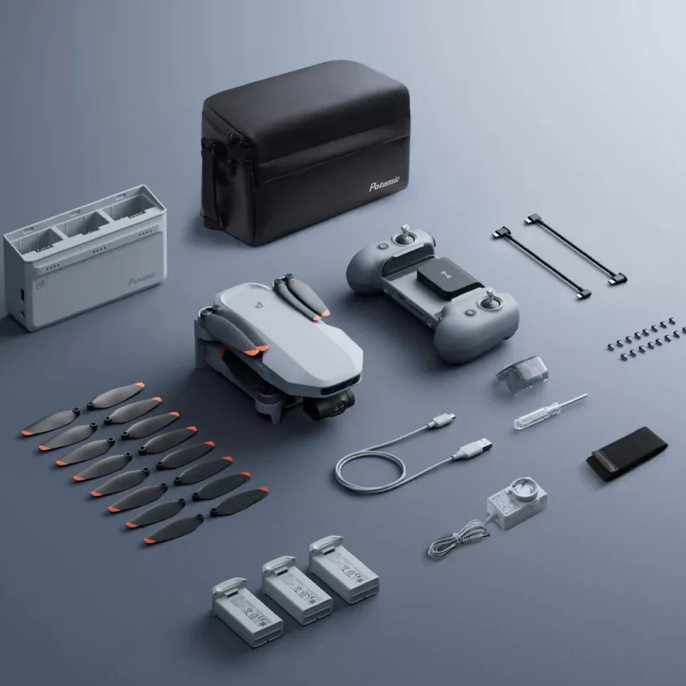 Incluye cargador y 3 baterías Fly more combo : Incluye 3 baterías, Cargador Hub inteligente y Bolso para transporte Sistema de transmisión de video PixSync 4.0 con hasta 10Km de alcance. Peso total inferior a 249g. Fotografía a resoluciones de 8K y video a 4K HDR. Zoom Digital hasta 4X. Vision nocturna potenciada con IA. Rastreo visual de objetos y personas potenciado con IA. Soporta fotografía vertical, ideal para redes sociales. Transferencia de datos hasta 25MB/s. Control a través de App Potensic compatible con iOS y Android. Especificaciones: Velocidad máx: Ascenso 5 m/s, Descenso 4 m/s, Horizontal 16m/s Máxima resistencia al viento: 38 km/h (nivel 5) Altura máxima de vuelo: 120m (sujeto a regulaciones locales) Altura máxima de despegue: 4000m GPS standards: GPS + GLONASS + Galileo + BeiDou Temperatura de operación: 0 a 40° C Frecuencia de operación: 2400 a
