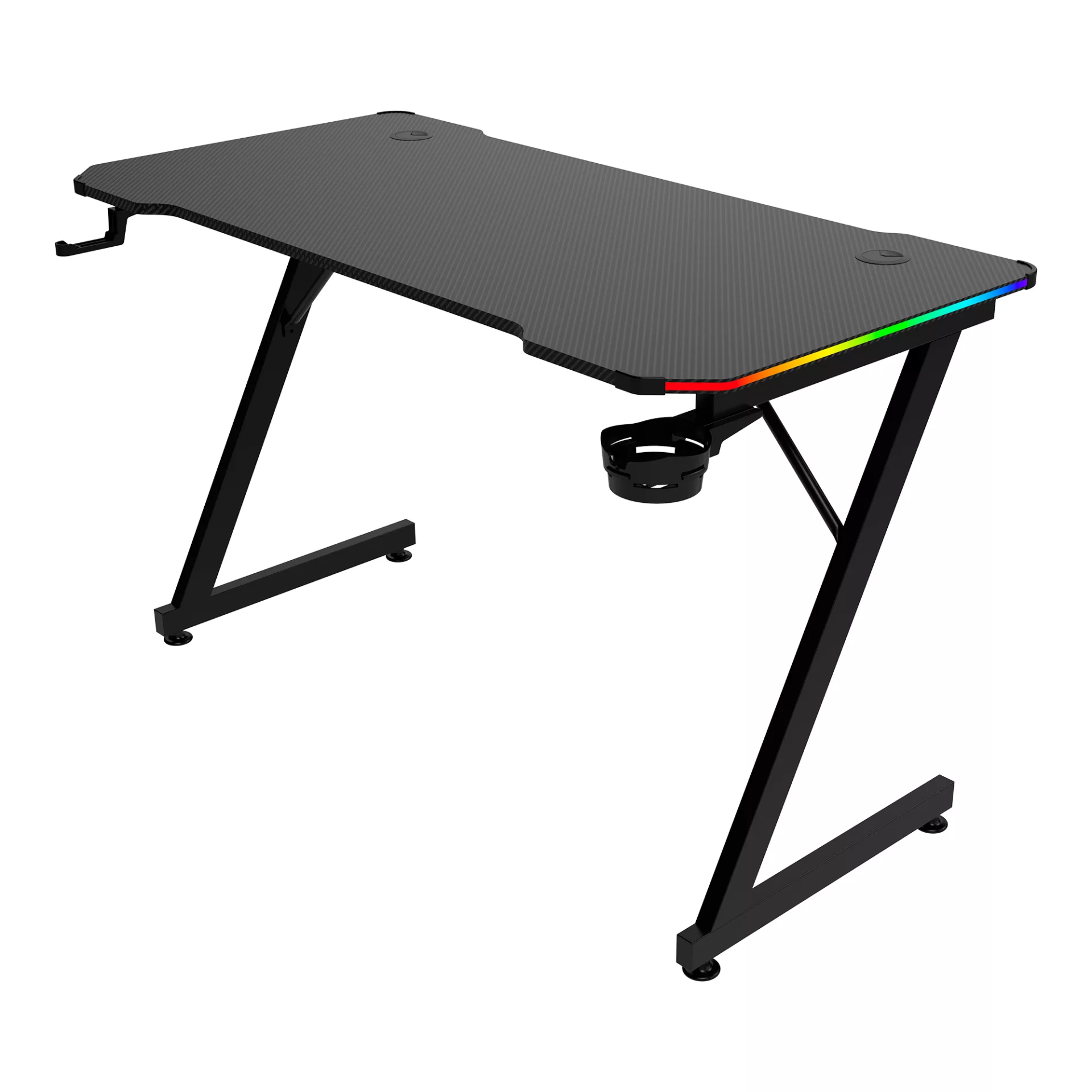 MARVO - ESCRITORIO GAMINGARENA 62DE-11● Tablero de partículas E1.● Textura de fibra de carbono.● Soporte de acero con acabado negro.● Resistente a las manchas.● Iluminación RGB con control remoto.● Cuenta con portavaso y portaauriculares.Materiales: PARTÍCULAS E1 (tablero) / ACERO (soporte).Alimentación: USB 5 V - 1 A.Peso: 12 kg.Dimensiones: 1200 x 740 x 600 mm APROX.Color: NEGRO.Garantía: 1 año.Contra Defecto de Fabricación.