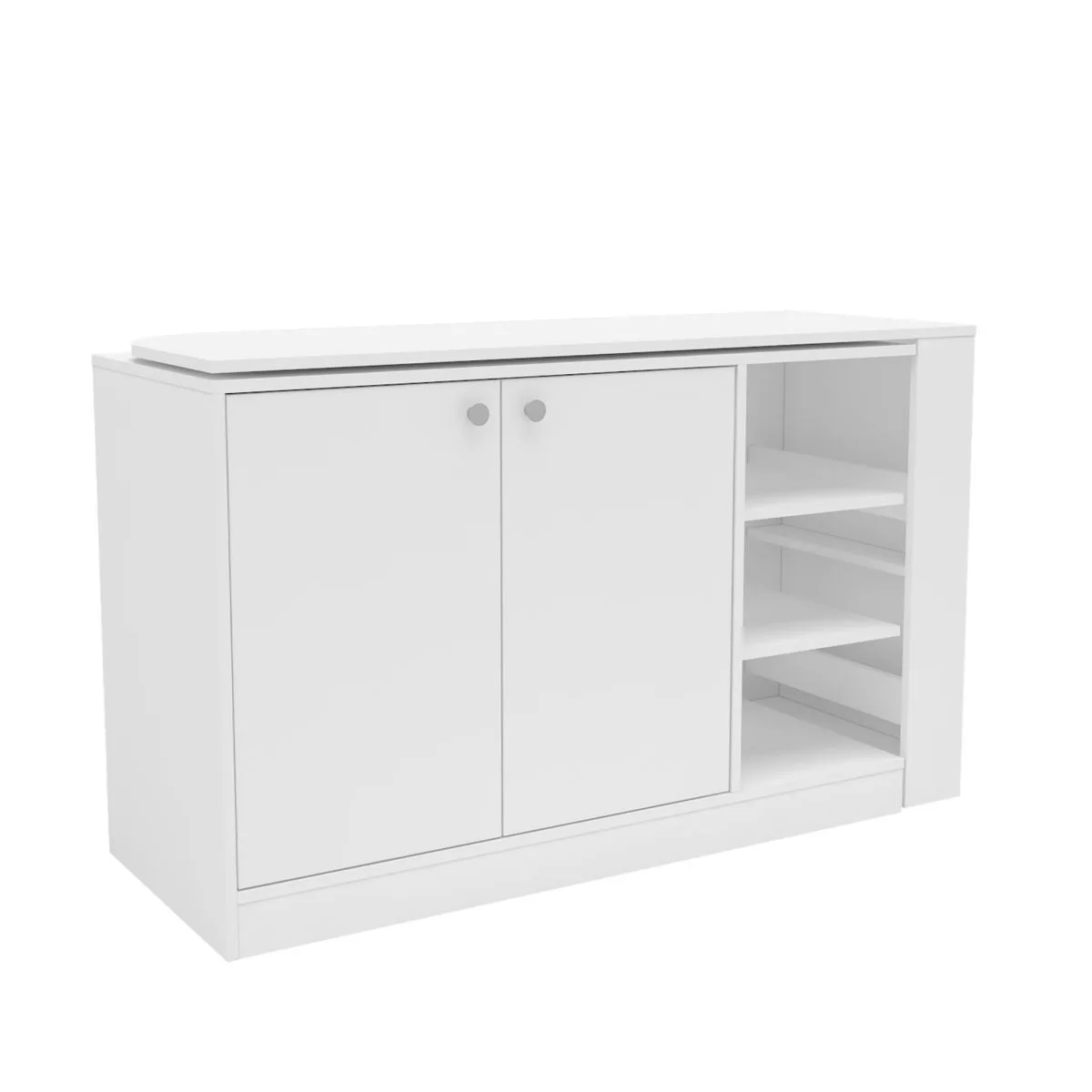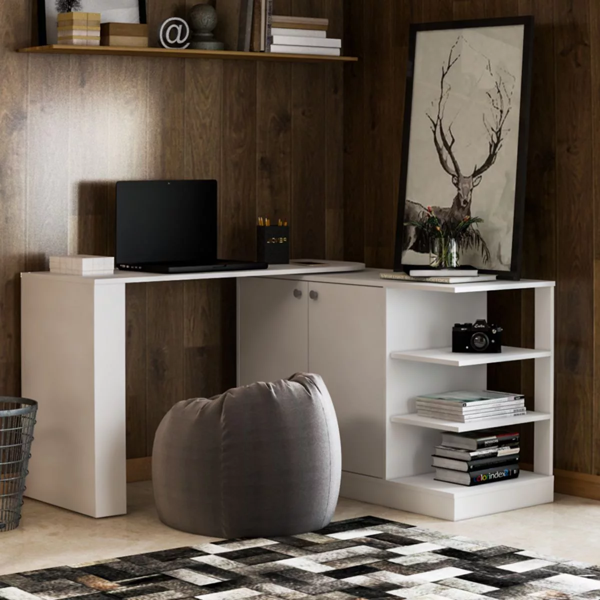 El escritorio Delfos, es una pieza funcional y adaptable a múltiples espacios. Gracias a su mesa de trabajo giratoria (con pivot) podés usarlo en distintas posiciones: Totalmente cerrado como armario, girando su mesa 90° como escritorio esquinero en formato "L" o girando la mesa 180° extendiendo el área de trabajo como amplia mesa lineal. Disfrutá de tu espacio de trabajo como más te rinda, cómodo y ordenado!