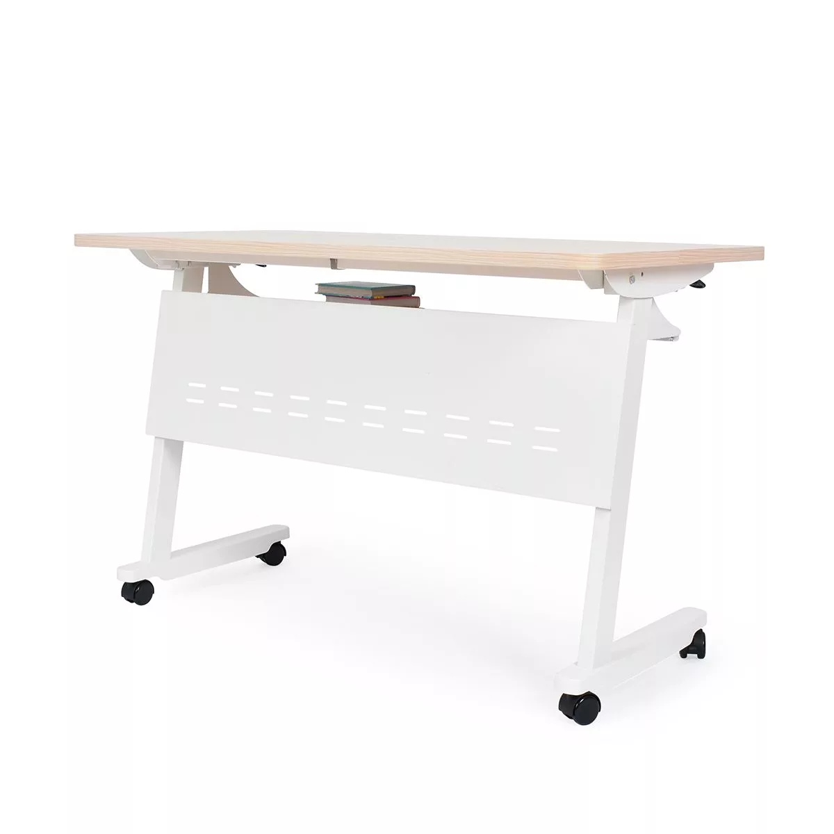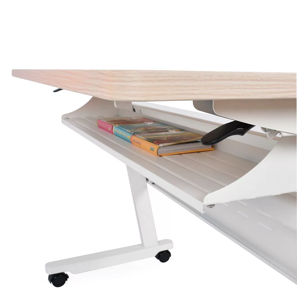 El Escritorio Flex I es una pieza de estructura firme con estética de vanguardia y altamente funcional. Su principal característica es ser plegable por lo que se puede guardar cuando no se está utilizando. Además posee ruedas y freno en la base, lo que permite traslado ultra suave sin esfuerzo y estabilidad en posición de trabajo. Con estante para guardado de útiles o pertenencias y frente cubre piernas. Es ideal para quienes necesitan definir áreas de trabajo por periodos de tiempo variables. Desde home office hasta aulas, espacios cowork, multifunción, salas de reunión o conferencias. Posee amplia superficie de apoyo y diseño ergonómico. Un concepto innovador en forma y función, aplicado a espacios de trabajo. Dejate sorprender y conocé toda la linea Flex de escritorios dinámicos en nuestra web!
