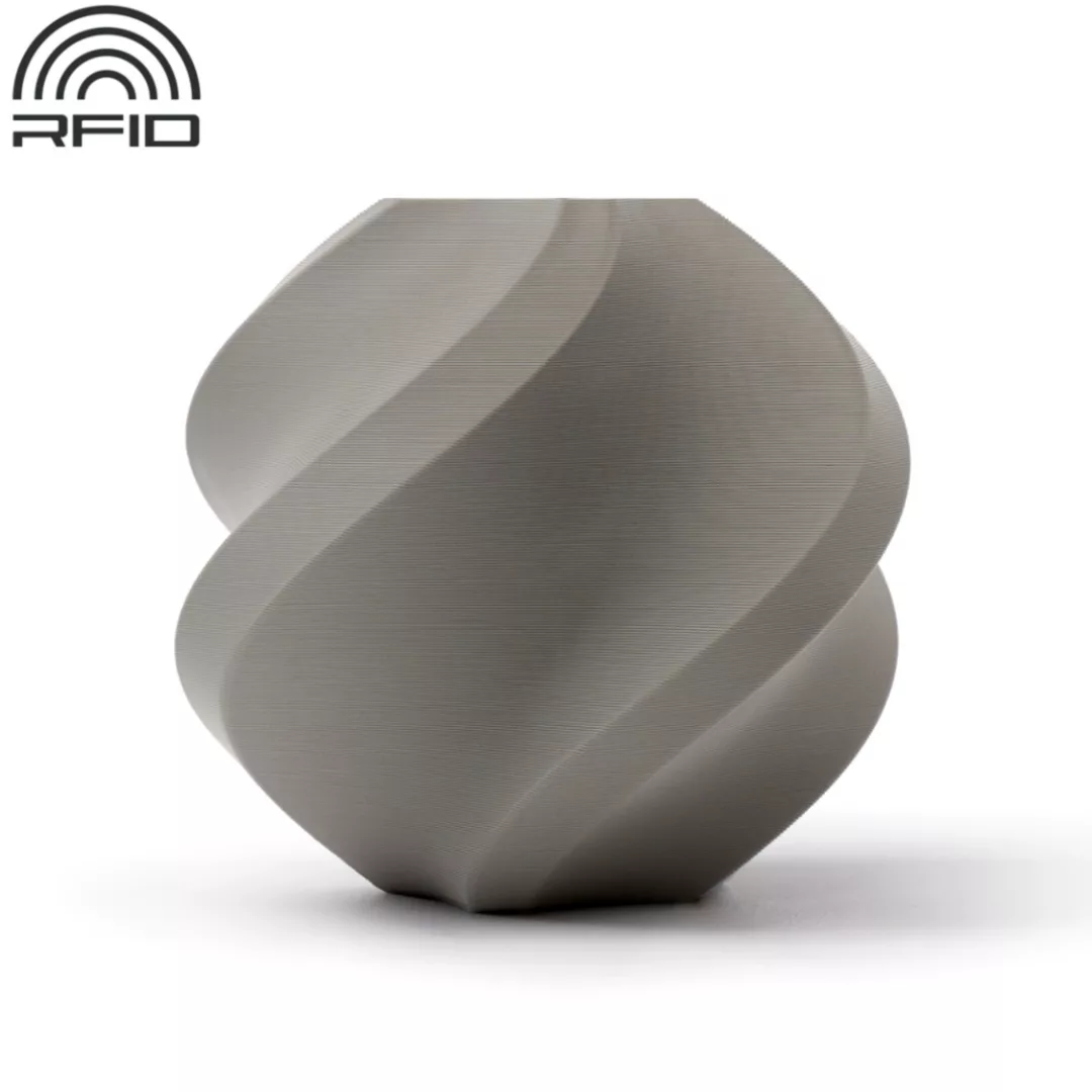 Carrete Bambu Lab con RFID Color gris - Gray (10103) Facil de imprimir y amigable con principiantes. Terminación de superficie suave. Impresión inteligente con RFID* Biodegradable. Diámetro: 1.75mm +/- 0.03mm Peso neto: 1kg *Compatible con sistemas AMS Bambu Lab