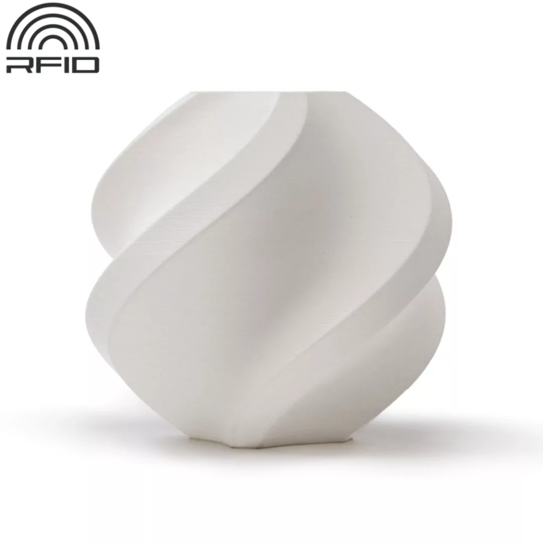 Carrete Bambu Lab con RFID Color blanco - Matte Ivory White (11100) Facil de imprimir y amigable con principiantes. Terminación elegante matte (sin brillo). Impresión inteligente con RFID* Biodegradable. Diámetro: 1.75mm +/- 0.03mm Peso neto: 1kg *Compatible con todos los sistemas AMS Bambu Lab