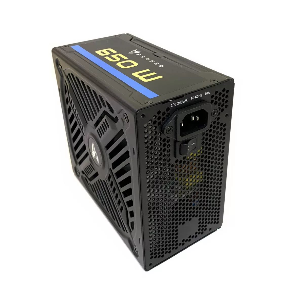 Marca Perseo Part Number ATX650W-P-GOLD Modelo ATX650W-P Potencia 650w Modular Full Modular Certificación GOLD Iluminación Sin iluminación Voltaje 110-220v Protección Sobre potencia y Sobretensión Ventilador 140mm Conectores x1 20+4Pin x2 4+4Pin x6 6+2Pin x8 Sata x6 Molex