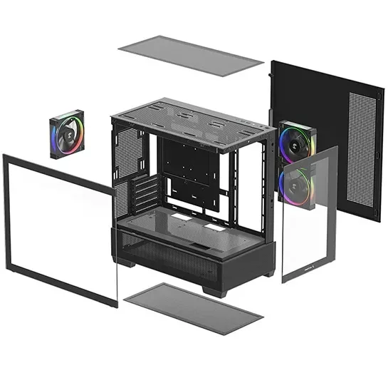 Frente y lateral de cristal templado El CG380 3F es un chasis panorámico Micro-ATX que combina diseño y funcionalidad en un diseño compacto. Con tres ventiladores PWM ARGB preinstalados, es una excelente opción para crear un espacio vibrante con un flujo de aire fiable. Materiales: ABS+SPCC+Vidrio templado Soporte: ITX/Micro-ATX, Micro-ATX (conector trasero ) Puertos de E/S frontales: 2x USB 3.0, 1x Gen2 Tipo-C, 1x Audio/Micrófono Bahias 3.5": 2 Bahias 2.5": 2 Puertos de expansion: 5 Ventiladores preinstalados: Lateral: 2x 120 mm Trasero: 1x 120 mm