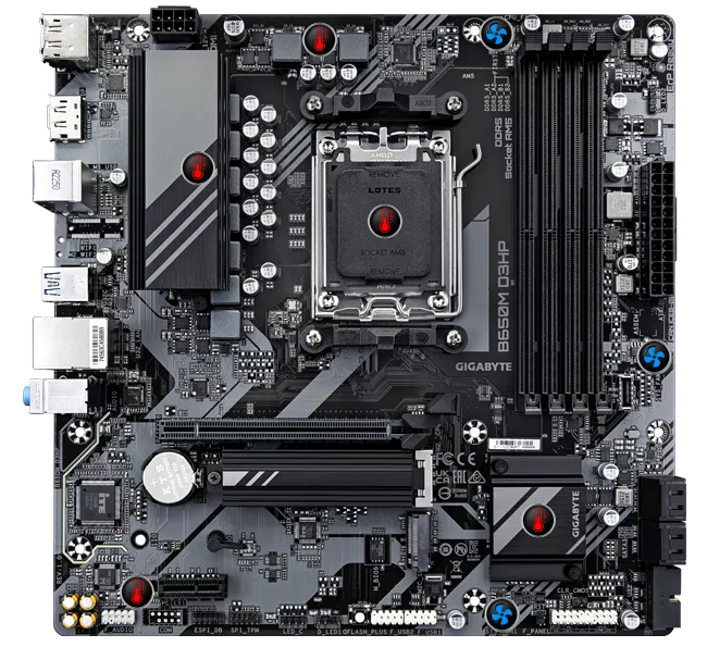 Descripción del producto: Gigabyte B650M D3HP - 1.0 - placa base - micro ATX - Socket AM5 - AMD B650